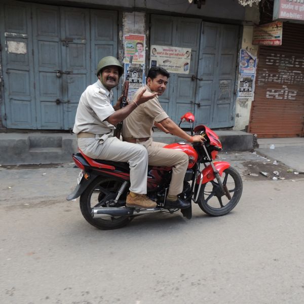 "Hoje perto das 14:00hs, adentrei à cidade de Bareilly, encontrei uma cidade fantasma, ninguém nas ruas e comércio fechado, quando perguntava a algumas pessoas elas se escondiam ainda mais, logo uma escolta policial me cercou e me levou a um quartel, fazendo muitas perguntas. Então entendi que a cidade está sob toque de recolher permanente, as pessoas nao podem sair às ruas e comércio não funciona, somente militares nas ruas, devido a um conflito religioso entre muçulmanos e indús, inclusive com uma morte ontem. Como não tinha pra onde ir, me trouxeram a um hotel e estou preso, podendo sair somente amanhã de manhã com uma escolta militar até as fronteiras da cidade. Quero salientar que em momento algum fui desrespeitado, humilhado ou agredido, na verdade eles me protegeram, porque segundo os militares existe um clima de guerra entre as duas religiões e é muito perigoso andar pelas ruas da cidade. Também quando sai do quartel em direção ao hotel sob escolta, fui fotografado por tres jornalistas que no hotel me entrevistaram para jornais da cidade, sempre sob a guarda de um policial. Na entrada do hotel existe guardas e em todas as ruas, e não se sabe até essa situação vai perdurar, Bareilly é uma cidade de médio porte aqui na Índia, com uma população de 180 mil habitantes'.