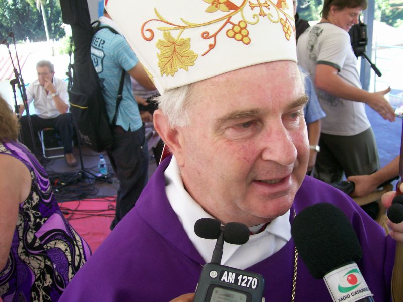 05/03/2012 A 22ª edição da Romaria de Frei Bruno reuniu cerca de 60 mil fiéis na manhã deste domingo (04) em Joaçaba conforme estimativa da Polícia Militar. O tempo bom favoreceu a vinda de pessoas de outros estados e até mesmo países. A concentração partiu da catedral Santa Terezinha às 08h e seguiu em direção ao cemitério municipal Frei Edgar onde foi realizada a missa. Diversas excursões troxeram peregrinos ao evento. A romeria teve a participação do postulador da beatificação de Frei Bruno, Frei Estevão, que veio especialmente de São Paulo para acompanhar a cerimônia. Em entrevista à Rádio Catarinense, ele informou que o processo está no estágio inicial. Estão sendo reunidos documentos, depoimentos e materiais que serão anexados para serem encaminhados ao Vaticano. Já o bispo diocesano, Dom Mário Marquez, ressaltou a multidão que acompanhou a romaria, fator considerado por ele muito importante para reforçar o pleito de transformar Frei Bruno em santo. Na edição desta segunda-feira do Grande Jornal você acompanha mais detalhes sobre a romaria e o processo de beatificação.