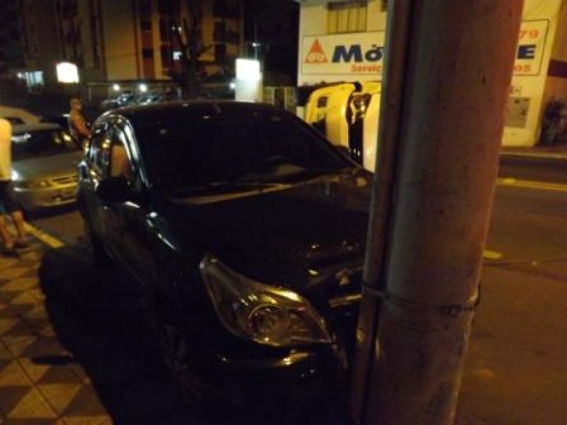 13/08/2012 Um acidente na Duque de Caxias em Joaçaba na noite deste sábado (11) envolveu três veículos. Por volta das 23hs um Fox, placas MKC-5389, que deslocava-se com destino ao acesso Adolfo Ziguéli, colidiu contra outros dois veículos. O motorista do Fox, F.A, 22 anos, informou aos policiais que perdeu o controle. O veículo desgovernado atingiu um Agile placas MJR-0794 e um Celta placas ANK-0889. Três pessoas com ferimentos leves foram conduzidas ao Hospital Universitário Santa Teresinha. O motorista do Fox foi submetido ao teste do bafômetro que deu negativo.