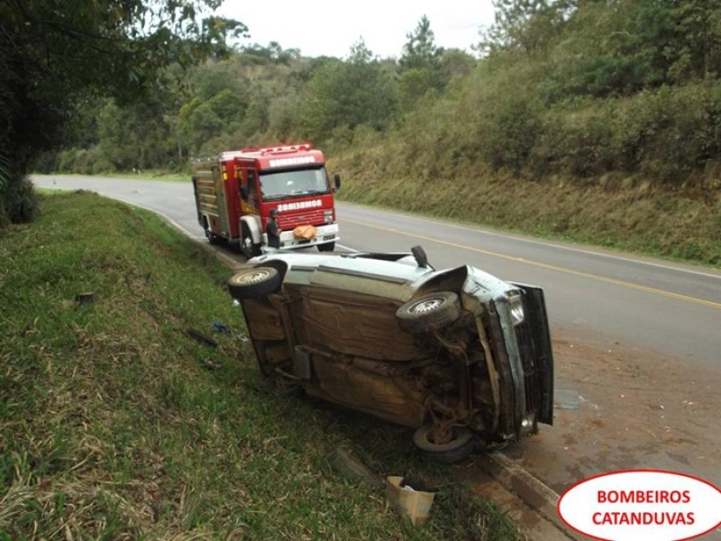 20/08/2012 O Corpo de Bombeiros atendeu na tarde deste domingo (19) por volta das 16hs, uma ocorrência de capotamento na BR-282. O acidente aconteceu próximo da Ervateira Regina. O condutor do Gol placas JNJ-5225 de Chapecó perdeu o controle do veículo e capotou. Três pessoas estavam no interior do veículo e sofreram apenas ferimentos leves. Duas pessoas foram conduzidas para atendimento no hospital de Catanduvas.