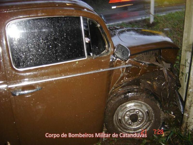 21/09/2012 O Corpo de Bombeiros de Catanduvas atendeu na manhã desta sexta-feira, dia 21, a uma saída de pista na BR-282 próximo à Curva da Pedra. Chegando ao local a guarnição se deparou com um veículo Fusca, placas de Água Doce, que saiu de pista e colidiu com um poste. O condutor de iniciais C. M. R., de 20 anos, tinha como passageiros os jovens de iniciais W. D. P. e F. L., ambos de 19 anos. As vítimas já encontravam-se fora do veículo, todos conscientes, apresentando somente escoriações. Após procedimentos pré-hospitalares, os pacientes foram encaminhados ao Hospital Universitário Santa Terezinha (HUST) em Joaçaba.