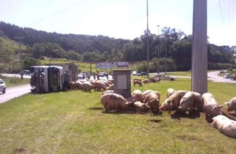 17/10/2012 Um acidente foi registrado na manhã desta quarta-feira (17) na SC-303, no trevo de acesso a Rio das Antas. Caminhão com placas MDS-2854 de Catanduvas trafegava no sentido Rio das Antas a Videira carregado de suínos, quando o motorista acabou perdendo do veículo que tombou na pista. A carga ficou espalhada e outro caminhão foi acionado para fazer a remoção dos animais. O condutor Anadir Masson, de 48 anos, nada sofreu.