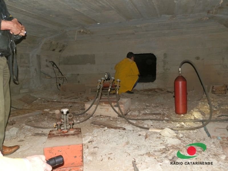 Um barco foi utilizado para verificação externa da estrutura.