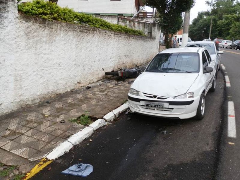 Lucas Oliveira Pires, de 18 anos, foi atendido pelo SAMU e conduzido ao Hospital Universitário Santa Terezinha. Ele apresentava escoriações pelo corpo, mas estava consciente, orientado e com os sinais vitais estáveis. A Polícia Militar esteve no local fazendo o Boletim de Acidente de Trânsito. Os danos materiais foram de grande monta na moto. Os condutores dos carros não se feriram. O Polo pertence a um funcionário da SIMAE e o Celta a um funcionário da Hisa/Weg.