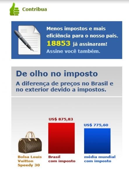 05/11/2012 Você é um dos milhares de brasileiros que compartilha da opinião de que o Brasil precisa, urgentemente, reduzir a carga tributária para favorecer o desenvolvimento? Então, você pode dar sua contribuição para que isso possa acontecer assinando o abaixo assinado do Movimento Brasil Eficiente (MBE), uma iniciativa que está recebendo o apoio de inúmeras entidades, entre elas, a Associação Comercial e Industrial do Oeste Catarinense, Acioc.