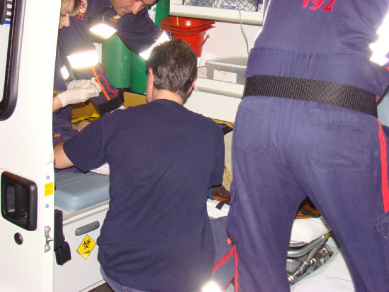 06/11/2012 Registrado mais um acidente de trânsito em Joaçaba envolvendo moto e veículo. Por volta das 21h desta segunda-feira (05) viaturas do SAMU foram acionadas para atender uma colisão na rua Arthur Pereira Alves. A Parati placas MAR-0765 de Joaçaba, conduzida por Gervásio Francisco, que deslocava-se sentido acesso Adoldo Ziguéli cortou a frente da moto XLX-250 com placa de Joaçaba e com dois ocupantes. O carona Amazonas da Silva, 47 anos, sofreu fraturas nas costelas e algumas lesões pelo corpo e foi conduzido ao setor de emergência do hospital Universitário Santa Teresinha de Joaçaba. O condutor da moto nada sofreu.