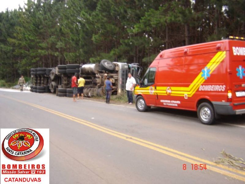 Às 18h40 a guarnição se deslocou até o km 28 da SC-454 em Água Doce. Saída de pista seguida de tombamento envolveu a carreta Volvo placas MDT-7524 de Treze Tílias, de propriedade da empresa Tirol, que estava carregada com leite em pó. Chegando ao local a guarniação constatou que o condutor não estava mais no local. A Polícia Militar Rodoviária de Ibicaré também atendeu a ocorrência.