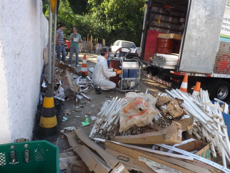 22/11/2012 Um dos descartes de resíduos sólidos mais preocupantes para o meio ambiente é o das lâmpadas fluorescentes, pois elas são altamente tóxicas e não podem ser jogadas no lixo comum. O correto é levar para uma loja que vende lâmpadas, como, por exemplo, lojas de material de construção, onde deve existir um ponto de coleta. De lá, as lâmpadas são encaminhadas para fábricas que fazem a descontaminação. Primeiro, elas são classificadas por tamanho. Depois, são retiradas as peças em metal, que são encaminhadas para fundições. Em seguida, a lâmpada é triturada.