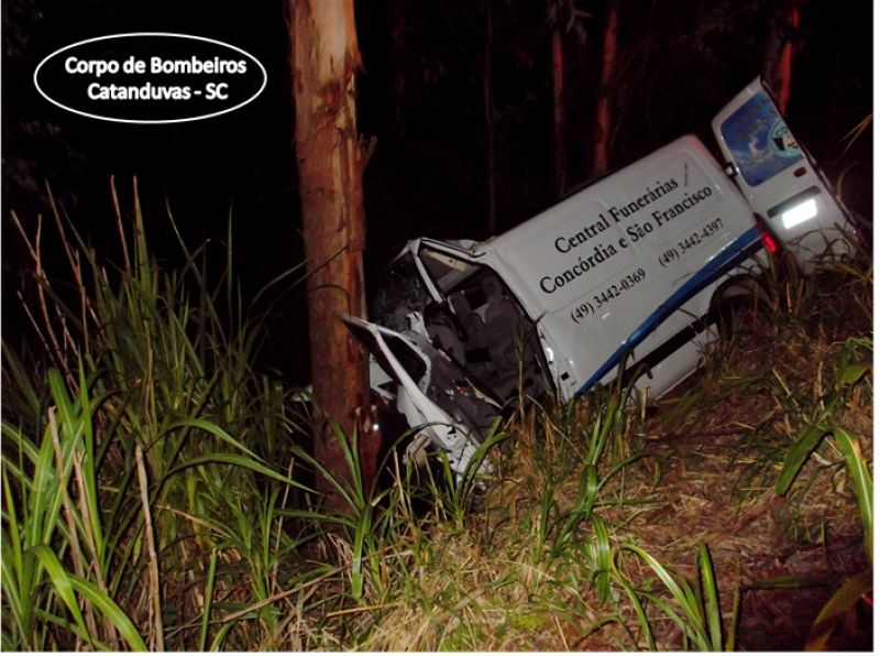 11/12/2012 Um homem morreu na madrugada desta terça-feira (11) em Jaborá. O acidente aconteceu por volta da 01h30 no km 20,1 da rodovia SC-463, na linha São Miguel, interior do município de Jaborá. Saída de pista seguida de choque em árvore envolveu um a van Renault/Master, placas MGZ-6609 de Concórdia, da Funerária São Francisco, conduzida por Célio Diomar Klein, de 65 anos, que morreu na hora preso às ferragens. O carona, V. P. M., de 25 anos, ficou gravemente ferido e foi conduzido ao Hospital São Francisco de Concórdia. O Furgão transportava um caixão com o corpo de um homem de iniciais J.T., de 80 anos. A ocorrência foi atendida pelo Corpo de Bombeiros de Catanduvas e Polícia Militar Rodoviária posto de Santo Antônio (Concórdia).