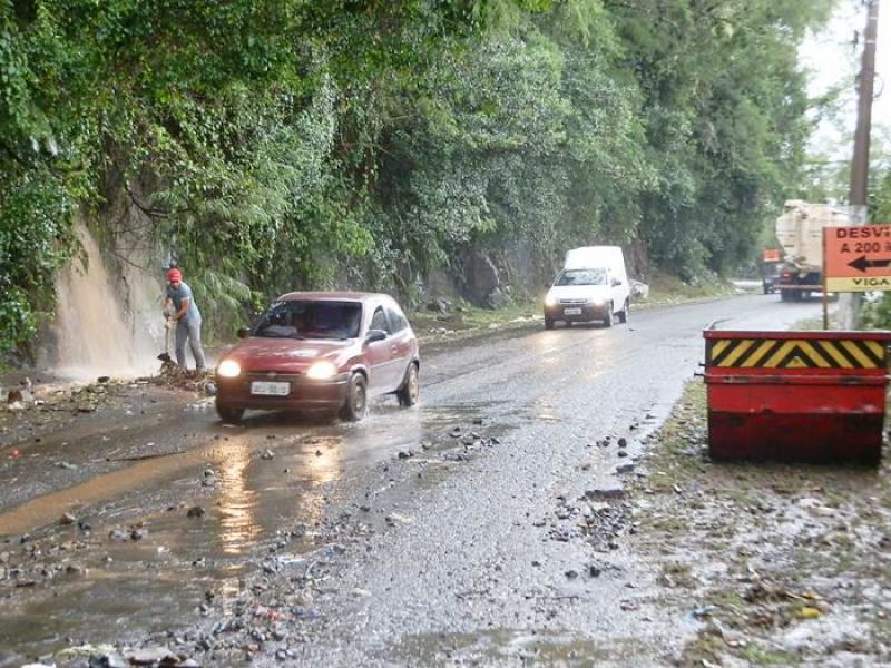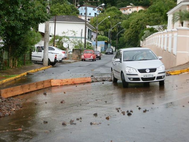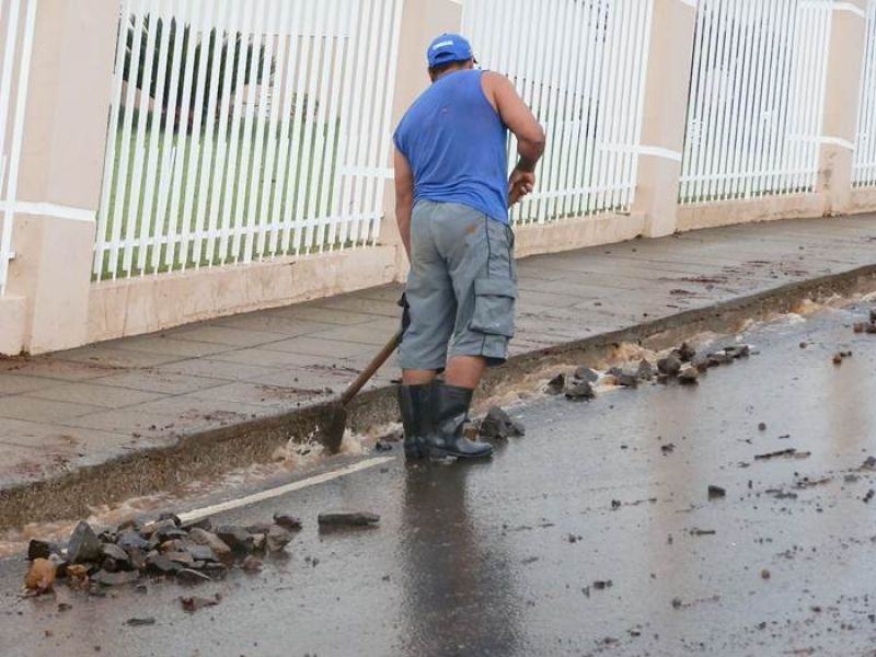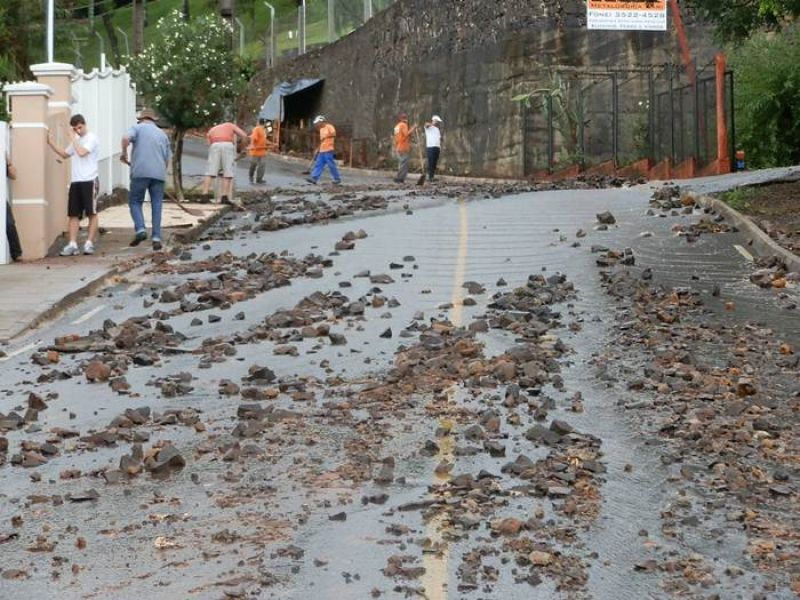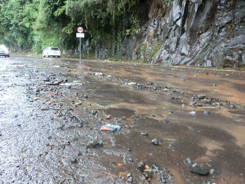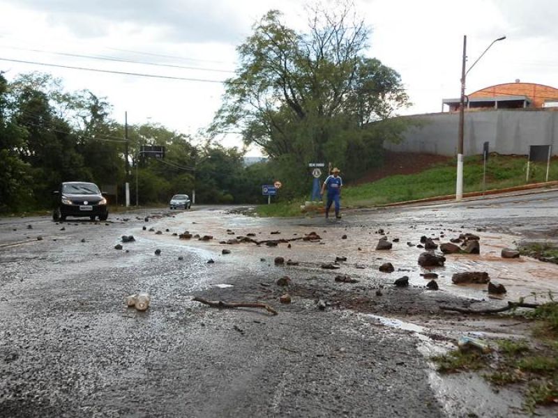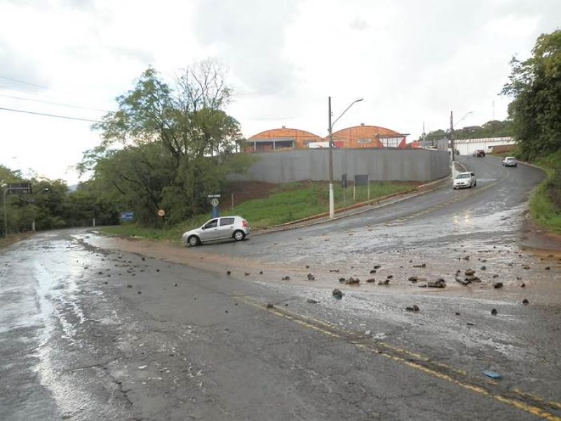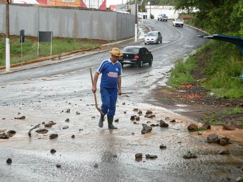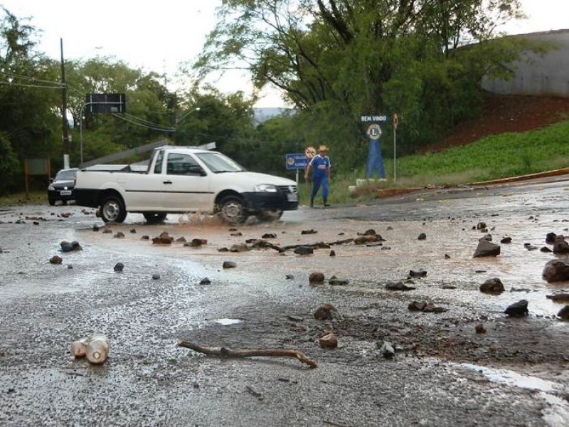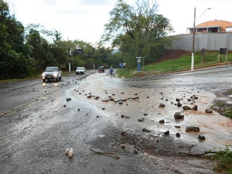 18/12/2012 Em poucos minutos, o dia praticamente ficou noite. Os faróis dos veículos precisaram ser acessos. Foram apenas 15 minutos de chuva torrencial por volta das 15h30 desta terça-feira (18), mas suficientes para causar diversos transtornos a motoristas e moradores, principalmente dos bairros da Cidade Alta em Joaçaba. A força da chuva reduziu drasticamente a visão dos motoristas e fez com que uma enxurrada obstruísse bueiros e algumas ruas, como nos acessos à Vila Pedrini, Acesso Adolfo Zigueli, bairros Anzolin, Boa Vista e Monte Belo. Na rua Ari Rodrigues Maia foi necessário desviar o trânsito devido ao acumulado de pedras e entulhos num volume de aproximadamente 30 centímetros de altura. Equipes da Prefeitura auxiliados por voluntários fizeram um mutirão para limpeza de ruas, calçadas e bocas-de-lobo. Em alguns trechos do acesso Adolfo Zigueli o volume de água transformou o barranco em cachoeiras. A Polícia Militar foi solicitada para orientar o trânsito. O trecho ficou intransitável para os motociclistas que tiveram que pegar outro acesso ou aguardar a retirada do entulho. Os problemas maiores foram na entrada do bairro Nossa Senhora de Lourdes, do novo terminal rodoviário e nas imediações da empresa Pegoraro,e ainda na rua Tiradentes. Foi registrada também pequena precipitação de granizo.