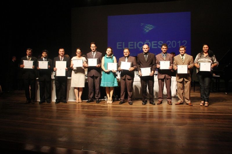 19/12/2012 A noite de terça-feira (18) foi especial para os candidatos eleitos em Joaçaba, Luzerna, Vargem Bonita, Jaborá e Catanduvas. Depois do stress causado pela campanha e e durante a apuração dos votos, os candidatos à vereadores e prefeitos eleitos puderam comemorar com familiares a conquista no embate eleitoral através da entrega dos diplomas por parte da Justiça Eleitoral. O ato formal de Diplomação, que antecede a posse no dia primeiro de janeiro, aconteceu no teatro Alfredo Sigwalt. Em razão da capacidade física, o acesso foi restrito pois foram 55 diplomações. Cada candidato eleito pode convidar cinco convidados.