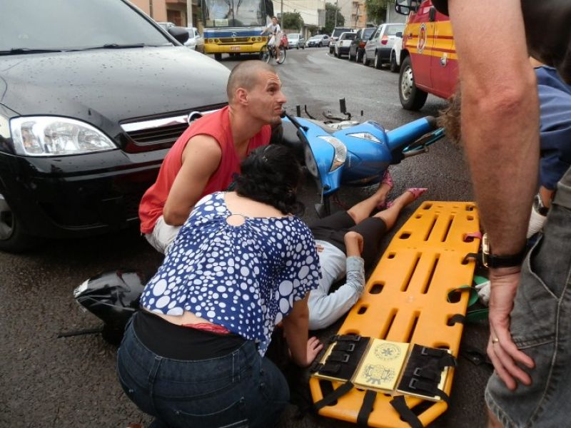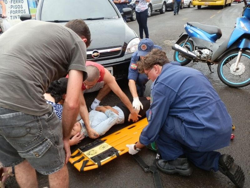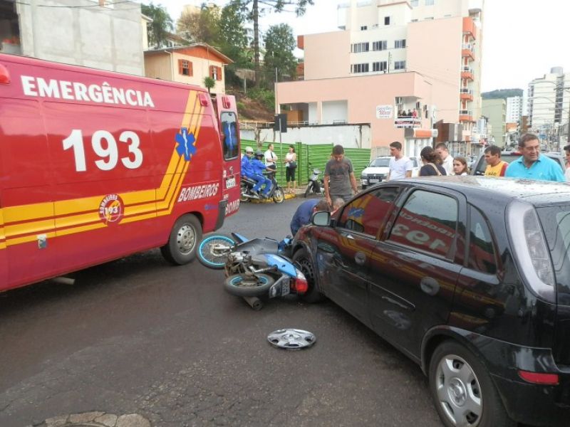 19/12/2012 A Polícia Militar atendeu no final da tarde desta quarta-feira (19) dois acidentes de trânsito na área central da cidade de Joaçaba. O primeiro acidente foi uma colisão envolvendo uma Moto Biz, placas MAW 2542 de Joaçaba e um Corsa, placas MIA 1677 também de Joaçaba. A moto atingiu o Corsa que estava saindo do estacionamento na rua Felipe Schimidt. A motociclista foi conduzida ao setor de emergência do HUST com ferimentos leves.