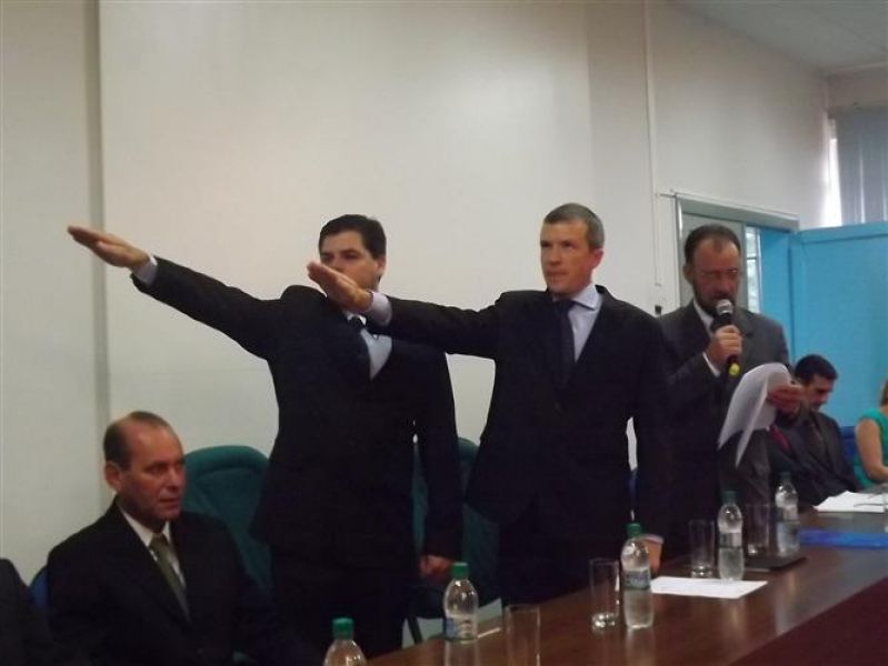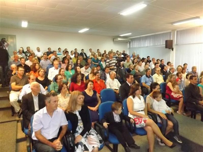 01/01/2013 A posse dos eleitos em Luzerna foi realizada às 9h desta terça-feira (1º) em solenidade realizada no Centro de Eventos São João Batista, o antigo seminário, com a plateia lotando o auditório. A sessão foi presidida pelo vereador Alcir João Denardi (PSD), a terceira vez na trajetória política dele. Foram empossados o prefeito Moisés Diersmann (PSD) e vice-prefeito Juliano Schneider (PSD), que quebraram a hegemonia do PMDB após 16 anos. Em 2011 Diersman presidiu a Câmara e em 2012 foi a vez de Schneider. Ambos saem do Legislativo para atuar no Executivo. Diersman, que era filiado ao PMDB, rompeu com o então prefeito Norival Fiorin, e, após várias tratativas, reforçou a oposição e colocou o nome para concorrer a prefeito juntamente com o presidente da sigla como candidato a vice e obtiveram resultado positivo no pleito.