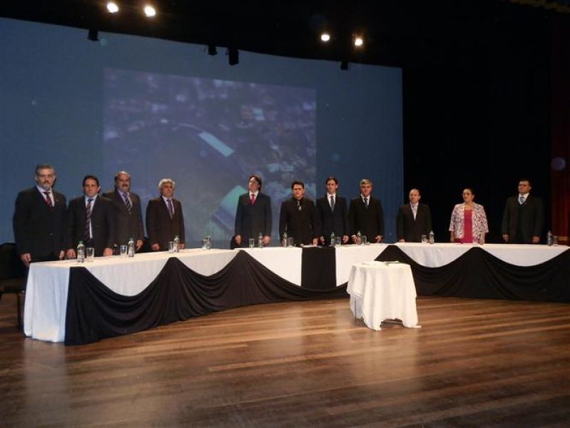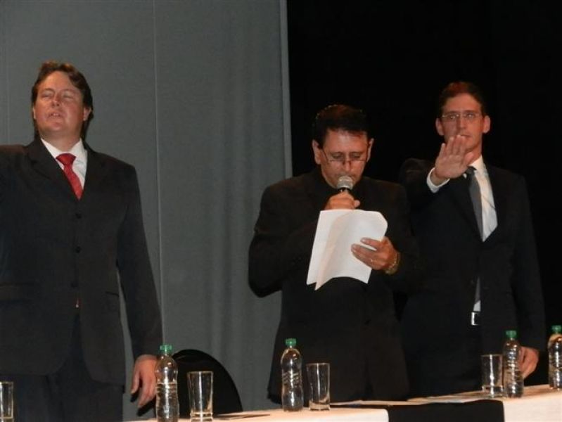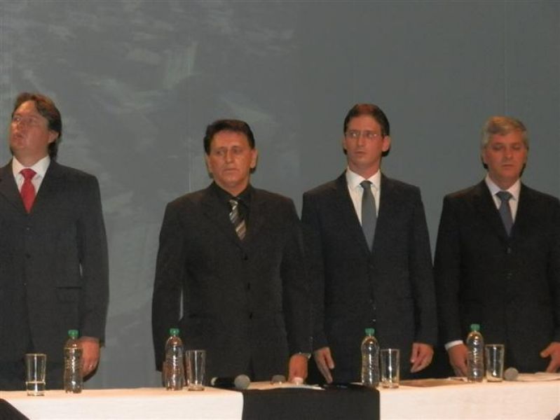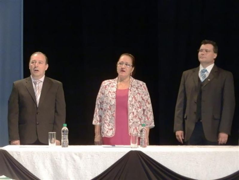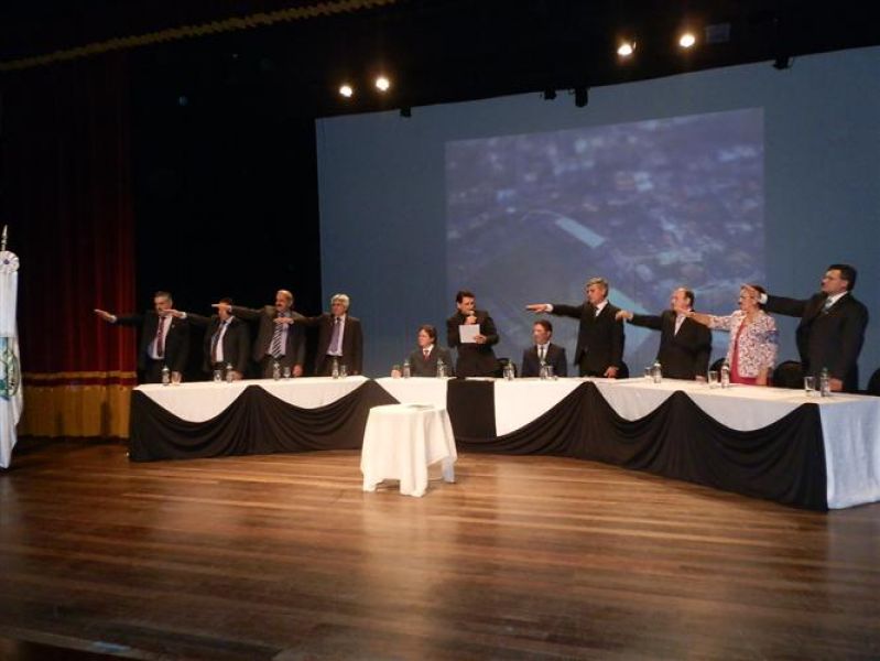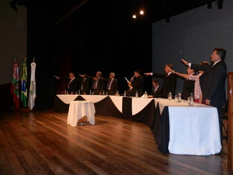 01/01/2013 O prefeito reeleito de Joaçaba, Rafael Laske (PSD), o vice Marcos Weiss (PMDB) e os nove vereadores eleitos em 7 de outubro de 2012 tomaram posse na noite desta terça-feira (1º). A solenidade aconteceu no teatro Alfredo Sigwalt e iniciou por volta das 19h. Em seguida os vereadores se deslocaram para a Câmara de Vereadores para a escolha da nova mesa diretora. Nos bastidores se cogitava que o vereador Luiz Vastres (PMDB), o mais votado no último pleito e que comandou a sessão de posse, seria conduzida à presidência do Legislativo. Porém, negociações de última hora acabaram causando uma reviravolta na cabeça de chapa. Ao invés do peemedebista, a articulação levou à formação de uma chapa composta por Elói Hoffelder (PSDB) como presidente, Francisco Moreira Lopes (PSD) o vice, 1º Secretário Jucelino Ferraz (PP) e 2º Secretário Luiz Vastres (PMDB). A eleição foi consensual. Dos atuais vereadores, apenas três se reelegeram, sendo Elói Hoffelder, Francisco Moreira Lopes e Luiz Vastres. Foram empossados ainda Ademir Righi (PMDB), Wilmar Zílio (PMDB), Divair de Marco, a Diva (PP), Almir Pastori (PSDB) e Éber Marcelo Bündchen (PDT).