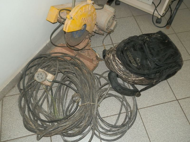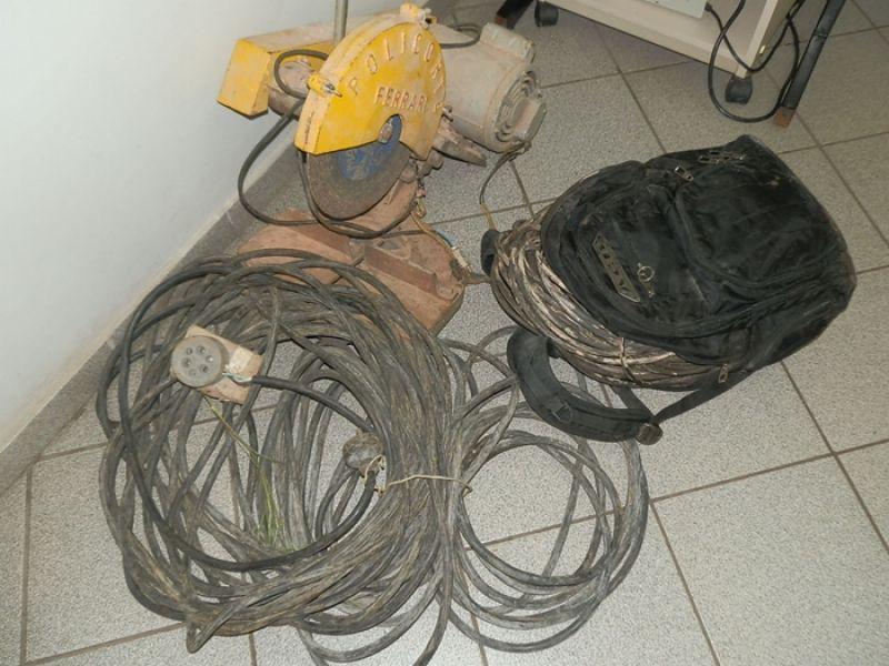 08/01/2013 A Polícia Civil de Joaçaba, através da Divisão de Investigação Criminal, recuperou alguns objetos em posse de pessoas suspeitas que possivelmente sejam provenientes de furto. No sábado (05), a Polícia Militar encaminhou até a delegacia alguns metros de fios elétricos de extensão e uma máquina policorte de bancada, utilizados em construções. O que chama a atenção é que não há nenhum registro de furto desses produtos até o momento. O investigador da DIC, Juliano Pedrini, detalha que na manhã desta segunda-feira (07) pessoas suspeitas foram vistas com uma mochila no bairro Nossa Senhora de Lourdes, sendo que no local acabaram deixando mais materiais usados em obras: