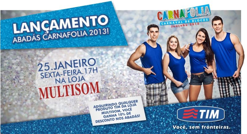 24/01/2013 A Associação de Blocos do Carnaval Catarinense (ABCC) faz o lançamento nesta sexta-feira (25) dos abadás do Carnafolia Joaçaba 2013. O evento inicia às 17h na Multisom, ao lado da Prefeitura. Os ingressos para os foliões que não se inscreveram em bloco custa R$ 60,00 o pacote para as cinco noites de festa. Eles estão à venda na portaria da Rádio Catarinense. A ABCC destaca que ainda dá tempo para fazer a inscrição em algum dos sete blocos para participar da maior festa do ano, através do site www.carnafoliajoacaba.com.br. O Carnafolia acontece de 8 a 12 de fevereiro na sede campestre do Clube 10 de Maio.