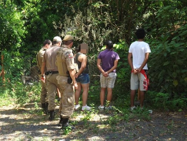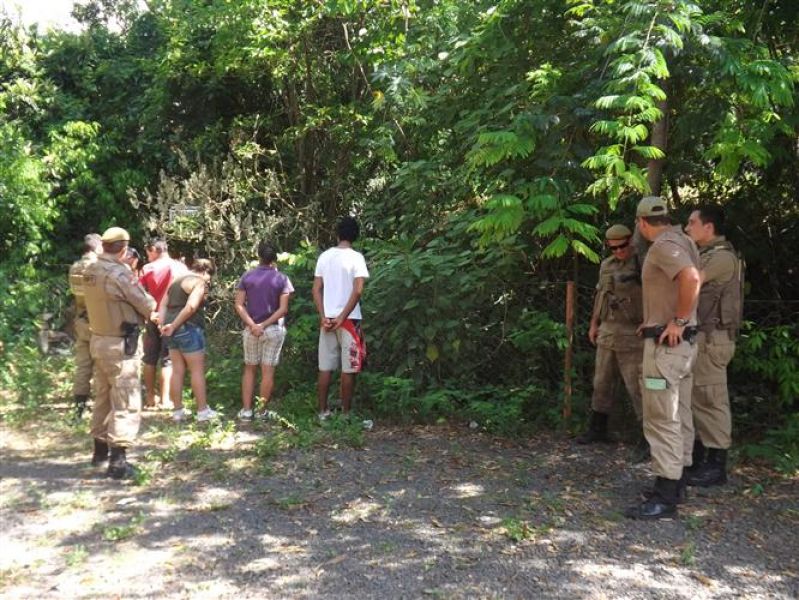 24/01/2013 A Polícia Militar localizou na tarde desta quinta-feira (24) cinco jovens que estariam consumindo drogas às margens do Rio do Peixe em Joaçaba. A PM foi informada por populares, por volta das 16h, que cinco pessoas estavam nos fundos do Ambulatório Médico Universitário (AMU), na rua Roberto Trompovski, centro da cidade. Chegando ao local os policiais se depararam com duas mulheres e três rapazes, aparentemente, sem o entorpecente. A movimentação de viaturas e de policiais chamou a atenção dos moradores e reuniu um grande número de curiosos. No momento da abordagem os jovens alegaram que tinham fumado maconha. A polícia acredita que o grupo descartou a droga no rio assim que avistou os policiais. Com uma mulher de 20 anos, após revista pessoal feita por uma policial feminina, foi encontrada uma bucha de maconha escondida no sutiã. Os cinco não portavam documento e foram conduzidos à delegacia de Polícia para as providências cabíveis. Dois dos jovens já possuem passagens pela polícia por furto. Uma das mulheres disse morar em Pinheiro Preto. A jovem que foi flagrada com a droga disse morar com os pais e que no momento não está trabalhando. Ela assinou um Termo Circunstanciado (TC) e se comprometeu a comparecer em audiência no Fórum. As marcas existentes às margens do Rio do Peixe evidenciando que o local é bastante utilizado por usuários de drogas. Tenente Cardano, do 26º Batalhão da PM em Herval d' Oeste, destacou a importância da comunidade em repassar as informações possibilitando que a polícia possa dar uma resposta rápida e eficiente nas ocorrências.