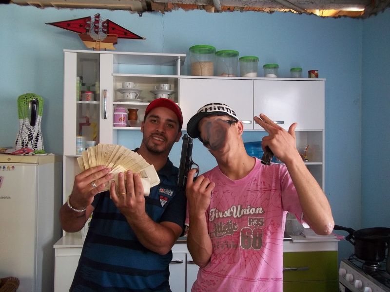 No carro estavam dois homens e uma mulher, Pedro Henrique Machado, Fábio Junior Stefanes Machado e Analice Gonçalves de Paula. Conforme o delegado, os suspeitos foram encaminhados para a delegacia e o dinheiro foi encontrado escondido nas roupas de Analice. “Na câmera digital apreendida aparecem imagens dos suspeitos exibindo notas de dinheiro. Até uma criança de um ano e oito meses aparece coberta com notas de cem e cinquenta reais, o que leva a polícia a pensar que o trio já praticava o crime de falsificação já há algum tempo no município”, ressalta o delegado.