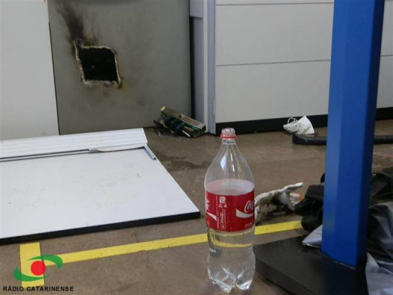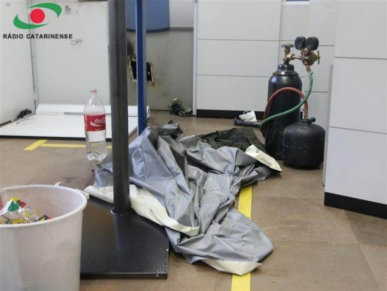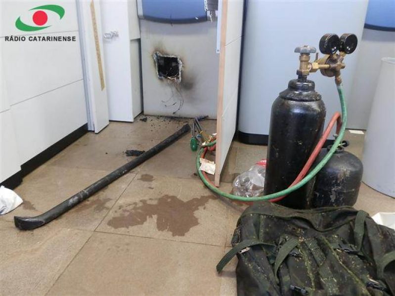 11/02/2013 Dois caixas eletrônicos foram arrombados com uso de maçarico na madrugada deste domingo (10) no centro de Catanduvas. O fato foi registrado por volta das 06h na agência do Banco do Brasil localizada na avenida Coronel Rupp. A ação foi percebida por populares que passaram em frente à agência e viram fumaça no interior da agência e a atitude suspeita de um homem no local e acionaram a Polícia Militar. Nesse tempo os caixeiros fugiram deixando no local maçarico, luvas, pé de cabra, chaves de fenda, uma mochila, cortina blaclaute e duas garrafas pet com água para resfriar o compartimento violado. Os bandidos estavam iniciando o arrombamento do terceiro caixa eletrônico do total de cinco instalados na agência. A agência foi isolada para a realização da perícia. Ao lado da agência principal está localizada uma filial do Banco do Brasil que era o antigo Besc. Segundo informações da Polícia Militar nenhum carro suspeito foi visto nas imediações do banco. No local há câmera de segurança, mas a polícia acredita que possivelmente tenha sido violada pelos bandidos. Não se sabe ainda se os bandidos conseguiram levar algum valor dos caixas violados.