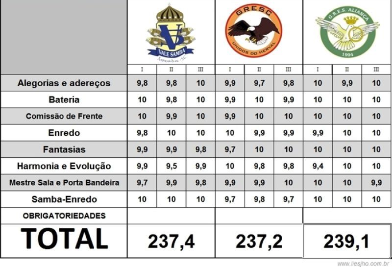 14/02/2013 A diretoria da Liga das Escolas de Samba de Joaçaba e Herval d’Oeste (LIESJHO) repassou na tarde desta quarta-feira (13) o mapa de notas com as justificativas dos julgadores. Os mapas foram entregues aos presidentes da Aliança, Vale Samba e Unidos do Herval. Com as justificativas em mãos as Escolas poderão avaliar onde e porquê foram penalizadas. As informações são consideradas importantes, pois servirão de subsídios para o próximo desfile em 2014. A Unidos do Herval, que ficou em 3º lugar, somando 237,2 pontos no total reclamou principalmente com relação a sete décimos perdidos no quesito samba-enredo, que foram decisivos na classificação final. A Rádio Catarinense também teve acesso as notas e justificativas dos jurados do Rio de Janeiro com relação a Escola de Samba Unidos do Herval. No Samba-Enredo, por exemplo, a julgadora Julieta Souza Dantas de Faria, que deu nota 9,7 considerou a letra confusa com muitas referências desconexas de diversos tipos de ‘curas’. Segundo ela, passa a impressão de letra feita de ‘retalhos’ em versos que não se entrosam nos desenhos melódicos. Na justificativa ela diz que isso acaba por prejudicar a riqueza artística e poética da letra que se apresenta pouco criativa