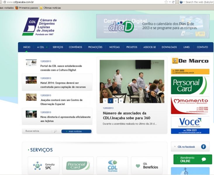 13/03/2013 A partir desta quarta-feira (13) Joaçaba passa contar com mais um portal na Internet. Entrou no ar o portal da Câmara dos Dirigentes Lojistas (CDL) que vai se tornar num importante canal de comunicação com os empresários do varejo e a comunidade. O projeto foi apresentado à diretoria executiva pelo presidente Pablo Calluans durante reunião realizada na noite desta terça-feira (12). O investimento nesta mídia digital se justifica pelo fato de que há muito tempo a internet deixou de ser um espaço alternativo, onde apenas os mais jovens e curiosos buscavam informações na rede. Manter um site na internet não é mais um luxo para poucas empresas, mas sim uma indispensável ferramenta para a sobrevivência e visibilidade em uma sociedade cada vez mais tecnológica. É fato que instituições, empresas de grande, médio e pequeno porte estão investindo cada vez mais no marketing digital. A CDL optou por um portal, que o diferencia de um site, pela possibilidade desta plataforma oferecer vários serviços aos associados e ao mesmo tempo notícias, com conteúdo multimídia, que poderão ser acessadas pela comunidade e pela mídia de Joaçaba e região.