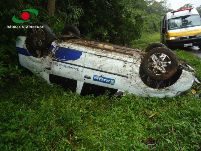 14/03/2013 Um veículo Logan (Renault) da Secretaria de Saúde de Joaçaba se envolveu num acidente na SC-301, KM 100, em Joinville. O capotamento aconteceu por volta das 12h desta quinta-feira (14). O veículo estava retornando para Joaçaba após deixar um paciente transplantado em um hospital de Joinville. O motorista Ricardo Parisenti relatou ao coordenador de frota da secretaria que teria rodado na pista. Sem controle, o veículo acabou capotando apenas com o motorista no interior. Foram registrados apenas danos materiais. A Polícia Rodoviária Federal está no local realizando o levantamento para confeccionar o laudo que deverá apontar as causas do acidente. A pista estava molhada.