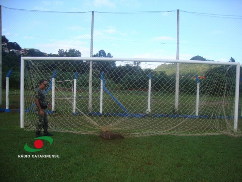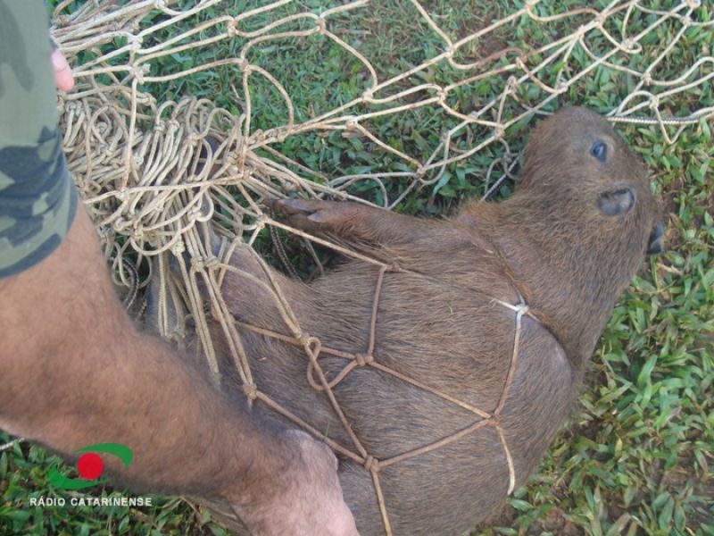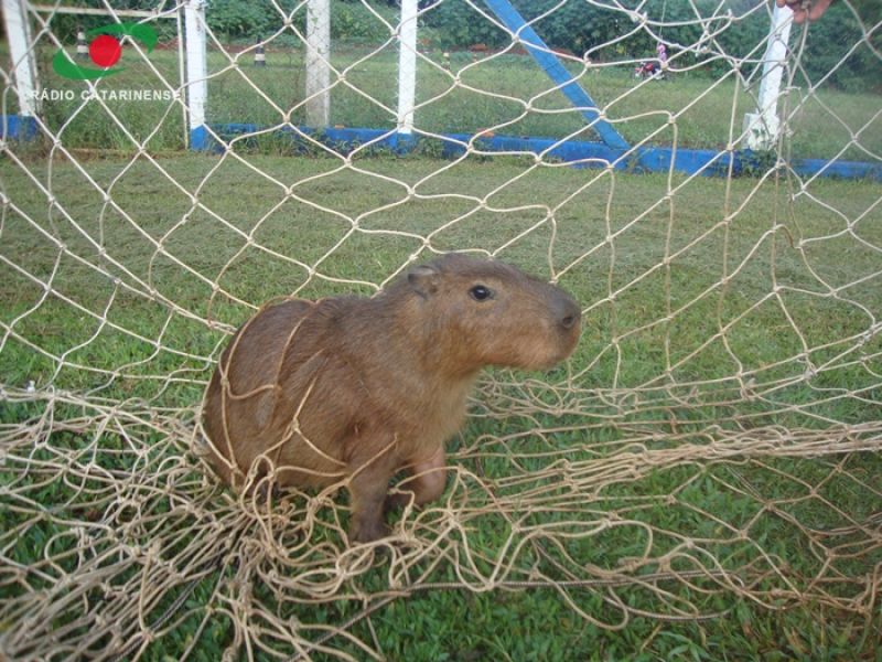 15/03/2013 A Polícia Ambiental foi acionada nesta quinta-feira (14) para atender uma ocorrência inusitada em Joaçaba. Moradores ligaram para a Ambiental comunicando que uma Capivara estava presa na rede da trave de futebol do campo do Frei Bruno. Policiais se deslocaram até o local e encontraram um filhote, sem nenhum ferimento, enrolado na rede. Após ser desenrolada, a capivara correu em direção ao Rio do Peixe.