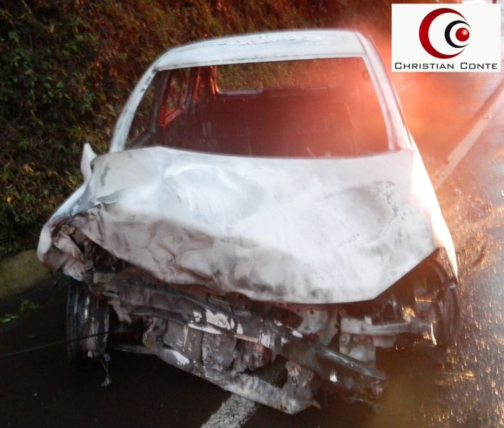 A vítima Jair Bussacro, que deslocava-se sentido Joaçaba-Campos Novos, perdeu o controle do VW Fox que conduzia. Sem controle, o veículo colidiu contra um barranco e em seguida incendiou na pista. Várias viaturas do Corpo de Bombeiros e também do SAMU foram acionadas e chegando ao local encontraram o veículo em chamas e o motorista vivo. A vítima sobreviveu ao acidente com queimaduras pelo corpo, principalmente nas mãos. Ele foi socorrido e conduzido ao setor de emergência do Hospital Universitário Santa Teresinha em Joaçaba.