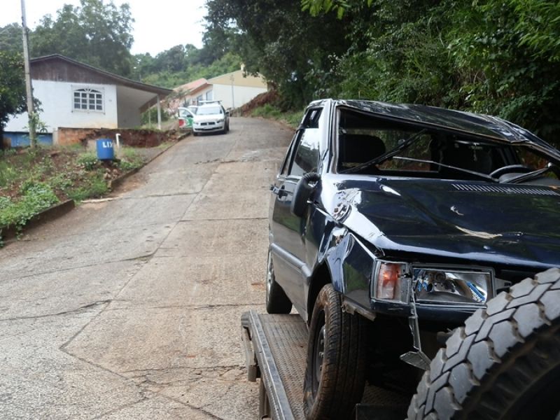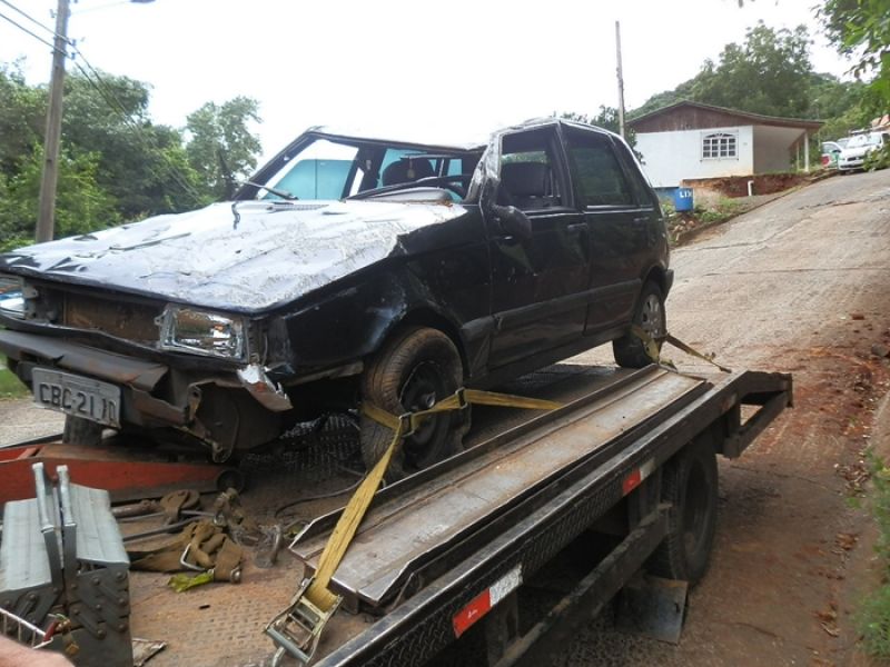 18/03/2013 Um motorista de Herval d’Oeste foi surpreendido no início da manhã desta segunda-feira (18) com a falta de freio numa ladeira. Em companhia da filha de 15 anos, J.A.S, 45 anos, deslocava-se normalmente pela rua Emílio Raum, bairro Rupp, quando ficou sem freio. Sem outra alternativa, e para evitar uma colisão de maiores proporções, o motorista acabou jogando o veículo contra um barranco. O Fiat Uno, placas CBC 2110, bateu contra o barranco e capotou. O condutor sofreu escoriações leves na cabeça e a filha nada sofreu.