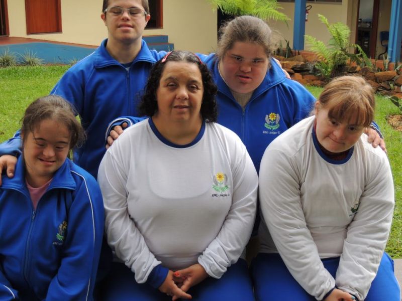 Em Joaçaba a Escola Especial Frei Bruno (APAE) presta atendimento as pessoas que tem Síndrome de Down. São 29 alunos que frequentam a Escola e participam das atividades. O educando Adenir Rodrigues dos Santos, que está com 40 anos, é um dos mais antigos frequentadores. Eele teve sua sua matricula efetivada em 01 de marco de 1981 com 8 anos de idade devido atraso em seu desenvolvimento o que diferenciava dos outros irmãos. Iniciou na escola com muita curiosidade, boa locomoção, diagnóstico de Síndrome de Down. Apresentava dificuldade na fala, pouca atividade espontânea, seu estado emocional era de apatia tudo em decorrência da Síndrome. Adenir foi evoluindo, se adaptou bem na escola, bastante sociável participa de todas as atividades com muita animação. Preocupa-se com sua aparência. É um aluno calmo e tranquilo, alegre, extrovertido com boa interação com os colegas e professores