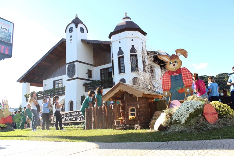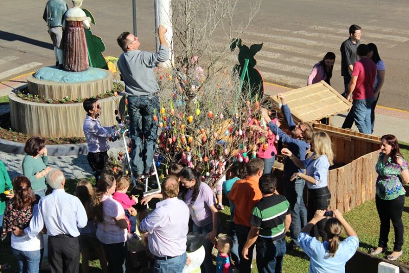 25/03/2013 O município de Treze Tílias inaugurou na sexta-feira a árvore de Páscoa (Osterbaum) que é uma tradição germânica cultivada pelas famílias do tirol brasileiro. Também foi preparada uma decoração de Páscoa em pontos centrais da cidade, como o Parque do Imigrante, Praça e Prefeitura. Nos jardins próximos a Secretaria de Turismo, Indústria e Comércio foi feito o Caminho do Coelho com elementos lúdicos para as crianças. O ato inauguralcontou com a presença de alunos da escola estadual e municipal, crianças da creche, autoridades municipais e população local.O Prefeito Municipal de Treze Tílias, Mauro Dresch, destacou que Treze Tílias tem uma cultura bastante peculiar e marcante e que a época de Páscoa é um momento de reflexão sendo importante chamar a atenção para o verdadeiro sentido da Páscoa.