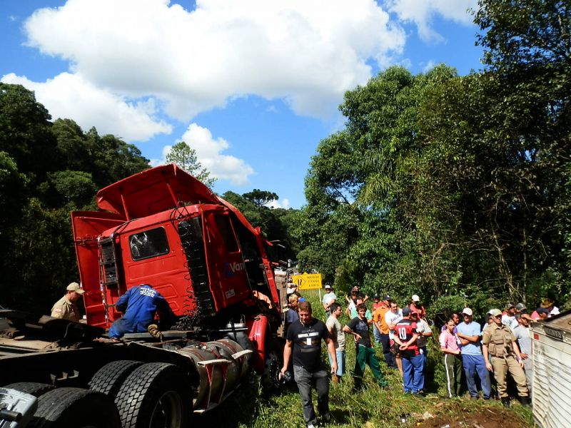 A carreta com placas de Xaxim estava levando a carga de frango para Blumenau. Os pedaços estavam acondicionados em caixas de aproximadamente 30 quilos.