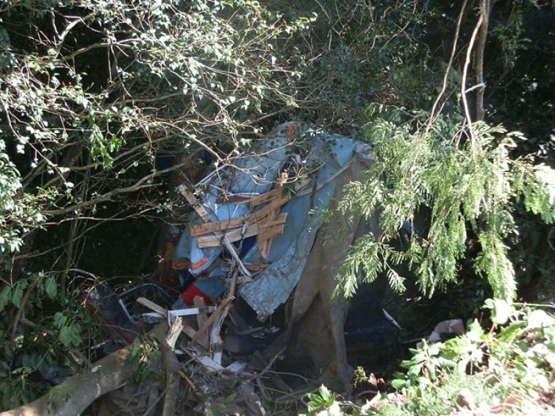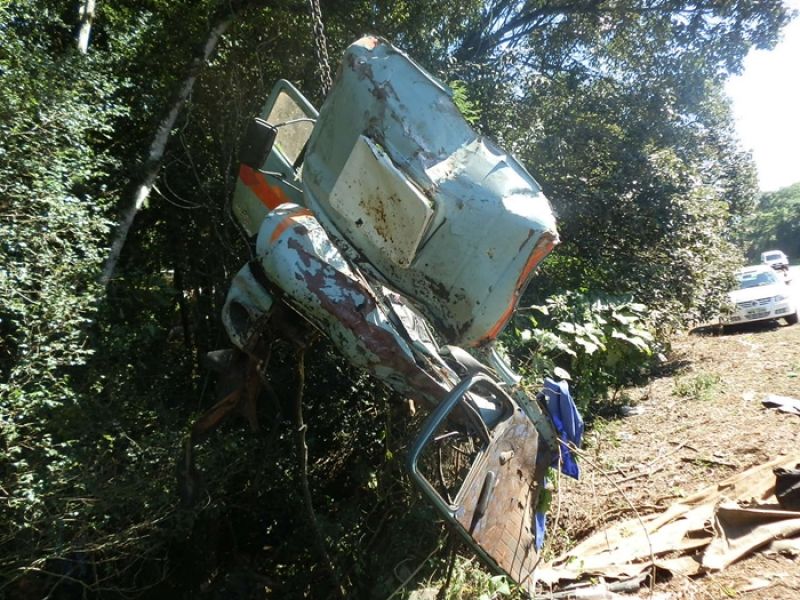 10/04/2013 Um salto para a vida. Assim pode ser descrita a atitude de um motorista na manhã desta quarta-feira (10) em Herval d' Oeste. Era por volta das 07h30 quando um caminhão Mercedes-Benz placas IIW-5303 de Garibaldi (RS), carregado de bobinas de aço, apresentou problemas de freio enquanto trafegava em um descida no km 379 da BR-282, próximo a um motel. Na iminência de acontecer uma tragédia, o motorista de iniciais V.J.L., de 39 anos, não pensou duas vezes e saltou da gabine do caminhão. O caminhão que fazia sentido Erval Velho/Joaçaba ficou completamente destruído após despencar em uma ribanceira às margens da rodovia, no lado direito da pista. O Corpo de Bombeiros foi acionado e conduziu o motorista com ferimentos leves ao Hospital Universitário Santa Terezinha (HUST).