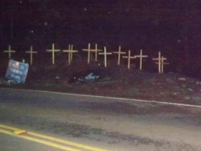 12/04/2013 Uma cena chama a atenção de motoristas que passam pelo acesso Egídio Pozzobom em Herval d' Oeste, que faz ligação com a BR-282. Quatorze cruzes com aproximadamente dois metros de altura foram colocadas, não se sabe por quem, ao lado da ponte. As cruzes estão no lado direito passando a ponte em direção ao centro de Herval. A quantidade possivelmente é referente ao número de acidentes ocorridos nos últimos anos no local, sendo que a maioria deles foi com morte. O último foi registrado na manhã do último dia 25. Carreta Mercedes-Benz com placas de Ibiaçá-RS carregada de fertilizantes se deslocava no sentido Herval d’Oeste quando caiu da ponte. O motorista, Delvi da Silva, de 34 anos, ficou preso nas ferragens e foi resgatado sem vida pelo Corpo de Bombeiros. O nome dele estava escrito no tacógrafo da carreta, o que ajudou na identificação. Testemunhas que trabalhavam na roçada às margens da rodovia informaram que a carreta apresentava sinais que estava sem freios. Grande parte da mureta de proteção da ponte foi arrancado pelo veículo. Chapas de compensado foram colocadas e a recuperação ainda não foi feita.
