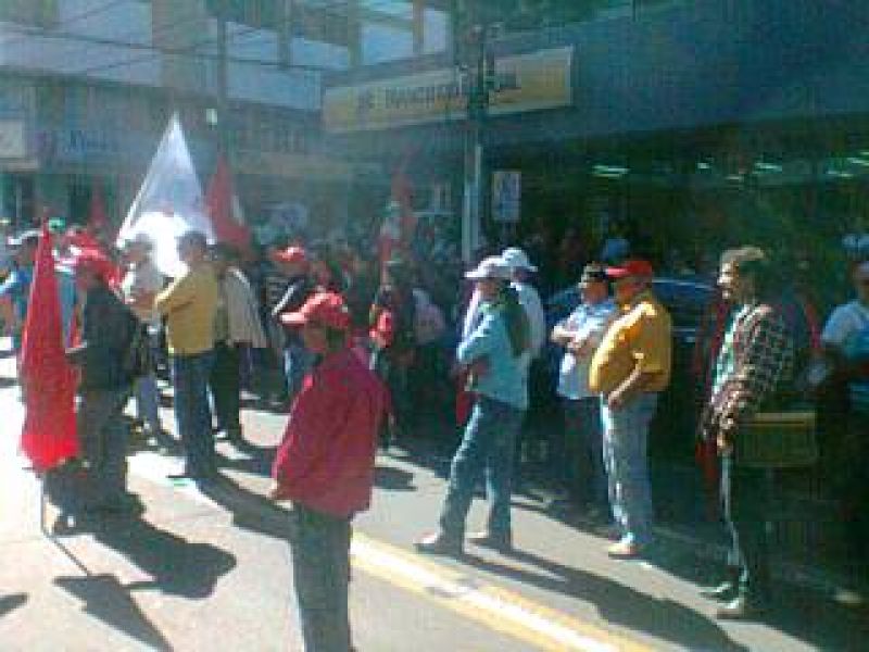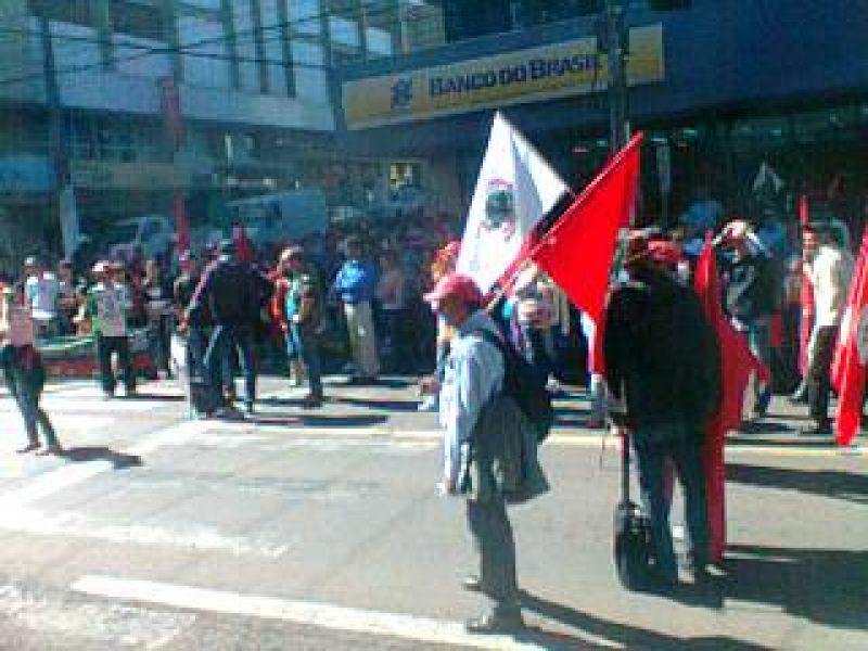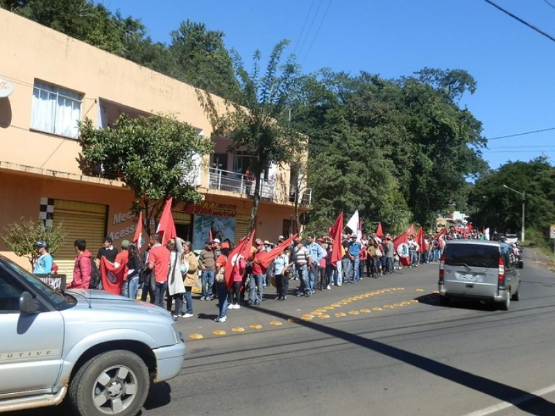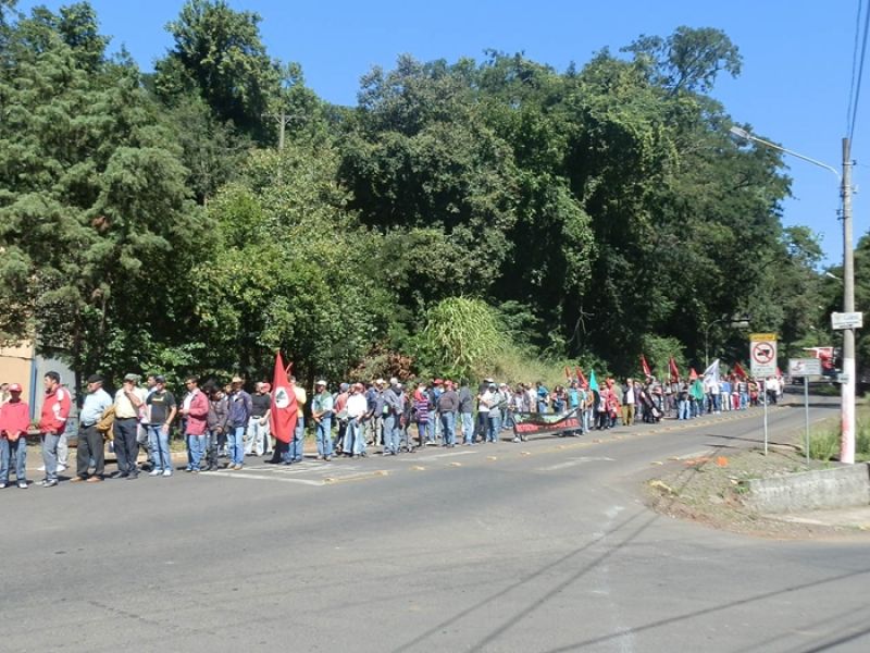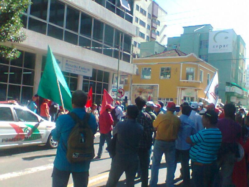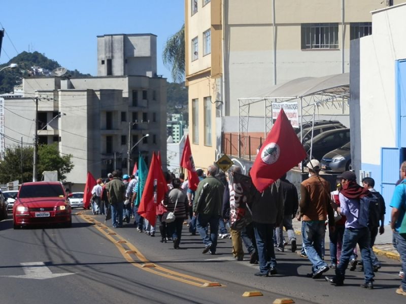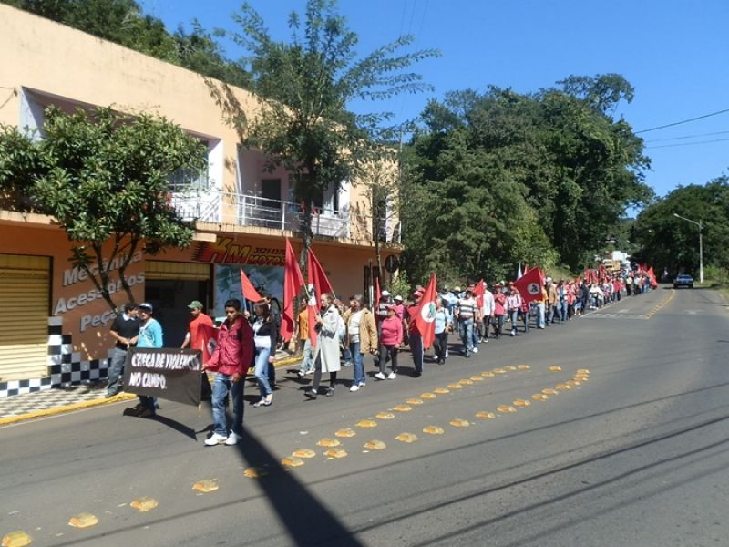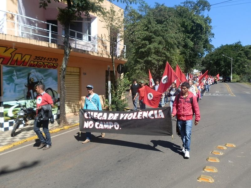 17/04/2013 Trabalhadores rurais Sem-Terra de várias regiões do Estado estão realizando nesta quarta-feira (17) em Joaçaba uma mobilização. O Movimento Sem-Terra (MST) relembra os 17 anos do Massacre de Eldorado dos Carajás, que aconteceu em 17 de abril de 1996 no município de Eldorado dos Carajás, no sul do Pará. A mobilização em Joaçaba, única em Santa Catarina, reúne trabalhadores Sem-Terra das regiões Oeste, Meio-Oeste e Planalto catarinense. Cinco ônibus com membros do MST chegaram logo cedo para a concentração às margens da BR-282. À tarde, de acordo com a coordenadora regional do MST, Irma Brunetto, os manifestantes farão uma marcha com duração de 19 minutos (tempo referente ao número de mortos em Eldorado dos Carajás) em direção ao Fórum no centro de Joaçaba, onde o MST quer apresentar as reivindicações da classe e pedir ao Ministério Público a fiscalização da reforma agrária no estado. Irma explica que a cidade de Joaçaba foi escolhida pelo movimento por centralizar as regiões onde há a forte presença do MST. A concentração aconteceu em frente a Prefeitura, Fórum e ao prédio da Receita Federal. Na Receita Federal e na agência do Banco do Brasil os representantes do grupo entregaram documentos contendo uma pauta de reivindicações que serão encaminhadas ao Governo Federal. A mobilização, com gritos de palavras de ordem e bandeiras, transcorreu de forma normal.