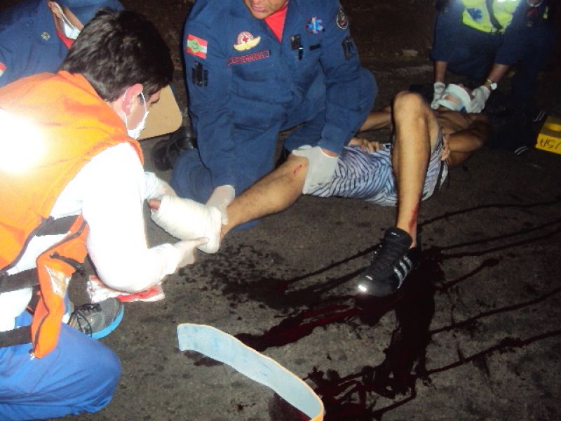 29/04/2013 Uma cena impressionante durante um acidente de trânsito no município de Herval d’Oeste mostra a violência de uma colisão envolvendo um carro e uma moto. O acidente aconteceu por volta das 21h na rua Santa Catarina. Um jovem de 19 anos, que conduzia uma moto colidiu de frente com um Fiat Pálio. O tênis do condutor da moto ficou preso próximo ao farol do veículo. O jovem foi socorrido pelo Corpo de Bombeiros e encaminhado ao setor de emergência do HUST com ferimentos no fêmur e no pé.