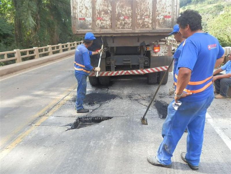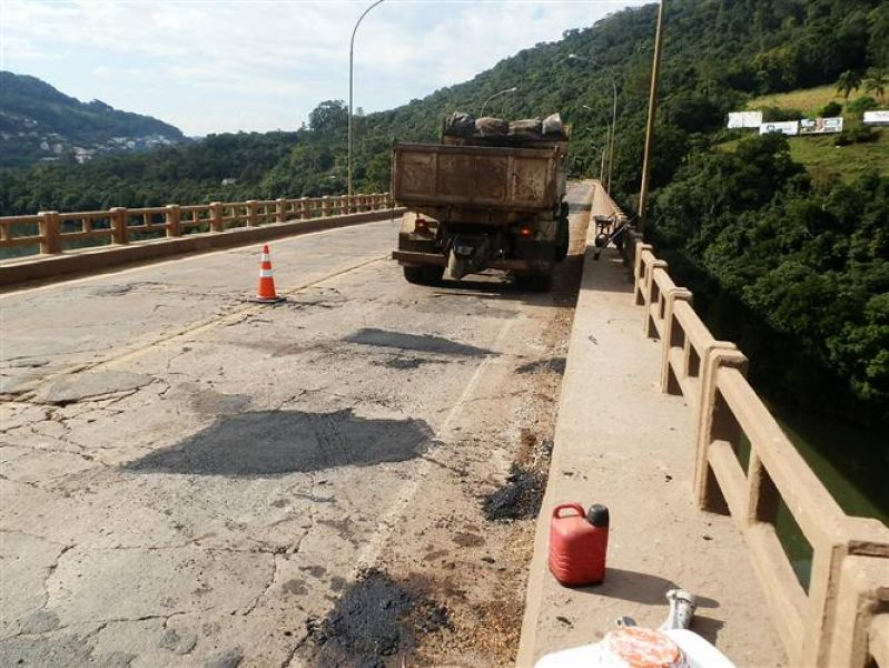 30/04/2013 O DNIT iniciou nesta terça-feira (30) a recuperação do pavimento da ponte Alfredo Ítalo Remor na BR-282 em Joaçaba. A obra tem por objetivo proporcionar mais conforto para os usuários que reclamam das condições da pista. O trabalho dará uma sobrevida de seis meses para o asfalto. Durante este tempo a intenção é agilizar o lançamento da licitação para a obra de alargamento da plataforma possibilitando aumento da capacidade de peso e também ampliação da passarela para pedestres. O processo licitatório deverá ser concluído em 2013 com previsão de início da obra para 2014. O engenheiro da empresa Setep, responsável pela obra, Beto Castro, explica o que está sendo executado um paliativo até que seja autorizada a recuperação prevista em projeto pelo DNIT. Entre equipes de sinalização, tapa-buracos, técnica e a que fará o serviço de sinalização do pavimento com mais uma capa asfáltica na semana que vem estarão envolvidas mais de 100 pessoas. A conclusão, segundo o engenheiro, está prevista para a próxima terça-feira (07) caso o tempo colabore. O trabalho conta com o apoio da Polícia Rodoviária Federal. O engenheiro garante que o trânsito na ponte não será interrompido por completo.
