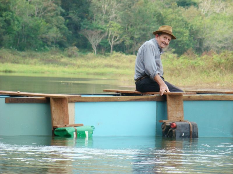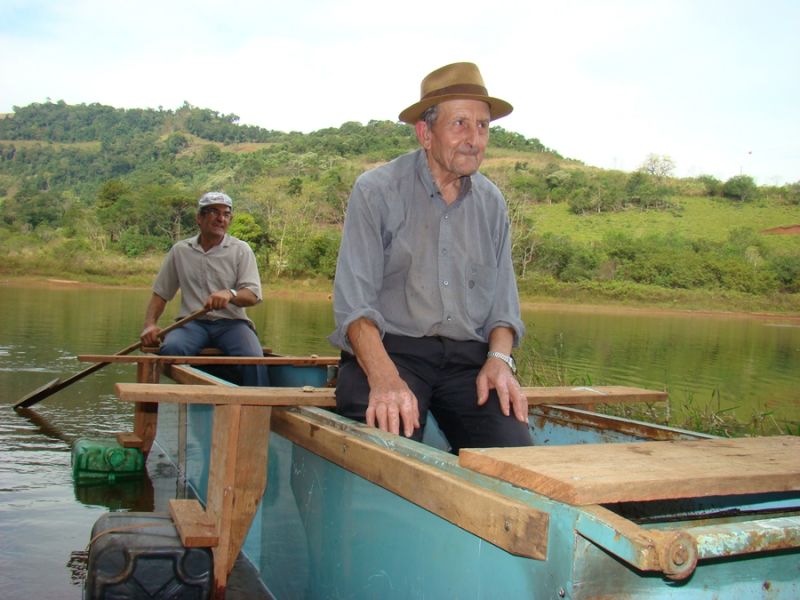 01/05/2013 Aos 91 anos um morador de Alto Bela Vista (SC) realizou um sonho. Construir sua própria embarcação e navegar pelas águas calmas do lago da Usina Hidrelétrica de Itá. Com uma engenharia naval caseira, o aposentado Olípio Lohmann, com auxílio do filho Nelson e do genro Dirceu Becker, construiu uma embarcação de 4 metros de comprimento por 62 centímetros de largura. O detalhe que mais chama atenção no projeto naval é a utilização de 3 gabinetes de geladeiras que foram reaproveitados. Para deixar pronta a embarcação, batizada de “Bela Vista I, foram dias de serviço, 1.816 rebites, 843 parafusos e pelo menos 9,5 quilos de silicone.
