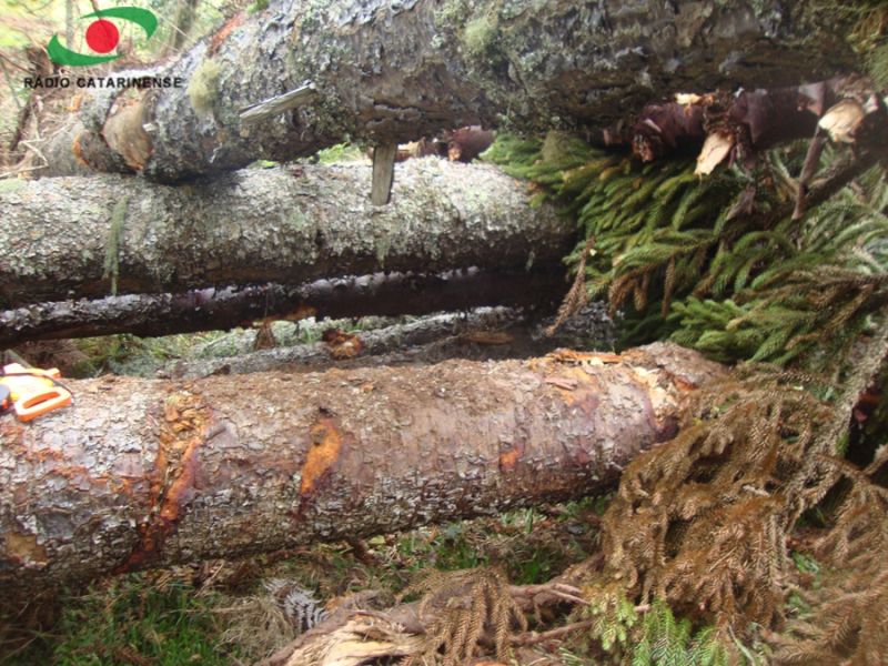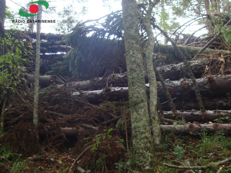 09/05/2013 A Polícia Militar Ambiental notificou o proprietário da Fazenda Três Pinheiros, localizada no interior do município de Vargem, próximo a Campos Novos, após a constatação do corte de espécie de árvores nativa ameaçada de extinção. Segundo o soldado Evandro Botega, do Pelotão de Polícia Ambiental com sede em Herval d' Oeste, no dia 26 de abril houve a verificação de denúncia de destruição de árvores nativas da espécie Araucária (Pinheiro brasileiro). No local foram encontradas 429 árvores que foram arrancadas pela raiz com o uso de escavadeira hidráulica. A Polícia Ambiental fez o levantamento e notificou o proprietário da área para que apresente os projetos e licenças ambientais expedidos pelos órgãos competentes. Botega reitera que a Polícia Ambiental ainda aguarda o recebimento das possíveis licenças. Ele destaca que a Polícia Ambiental deverá retornar ao local para fazer o levantamento a respeito das áreas de preservação permanente, pois, houve a extração das espécies em área de preservação permanente, no entorno de nascentes e cursos hídricos. A multa - que pode ser aplicada por árvore destruída - pode chegar a R$ 750,00 a unidade - R$ 500,00 mais agravante por tratar de espécie em extinção – ou seja, o valor total poderá ultrapassar os R$ 300 mil. “Não havendo as licenças ambientais será elaborado todo o procedimento administrativo, com o indicativo de multa e a apreensão da madeira extraída que ainda está no local”, ressalta. O agravante tem por base que as espécies destruídas, além de correr o risco de extinção, geram sementes nesta época, o pinhão. Segundo o proprietário, a extração das araucárias teria ocorrido no início do mês de abril.