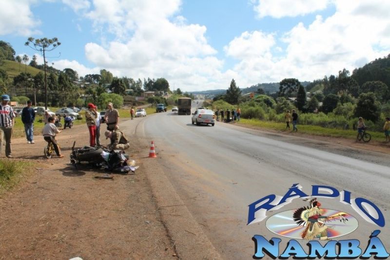 25/05/2013 Um acidente trágico envolvendo duas motocicletas com placas de Joaçaba, ocorreu na manhã deste sábado (25), na BR-282 em Ponte Serrada. Uma das motocicletas de placa MEL-5873, de Joaçaba, perdeu o controle na curva do Catapan, e bateu em um barranco, ficando totalmente destruída. Segundo informações preliminares, a outra motocicleta de placas MLD-0078, também de Joaçaba, perdeu o controle quando seu condutor foi olhar para traz, para ver o que tinha acontecido e também acabou caindo, ficando sua motocicleta destruída totalmente. Segundo informações do Hospital Santa Luzia, o motociclista Marcos Antonio Carniel, 41 anos, deu entrada com vida, mas não resistiu aos ferimentos e veio a óbito. O outro motociclista, Daniel Vidal Guerreiro, 42 anos, está estável e não corre risco de morte, ele fraturou a clavícula e sofreu deslocamento no joelho. Daniel foi conduzido à Joaçaba por volta das 13 horas, mas não corre risco de morte.