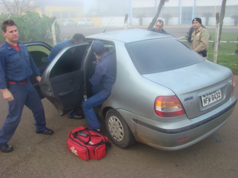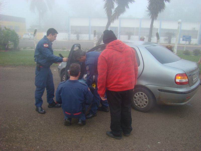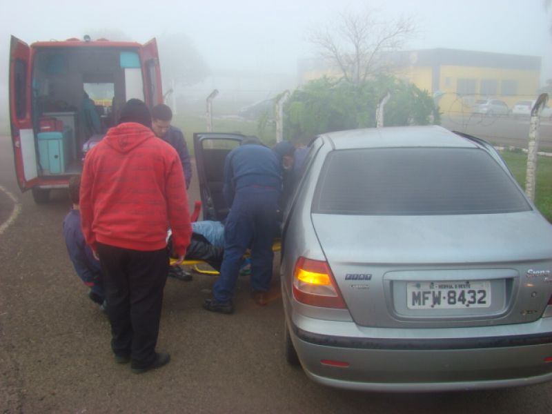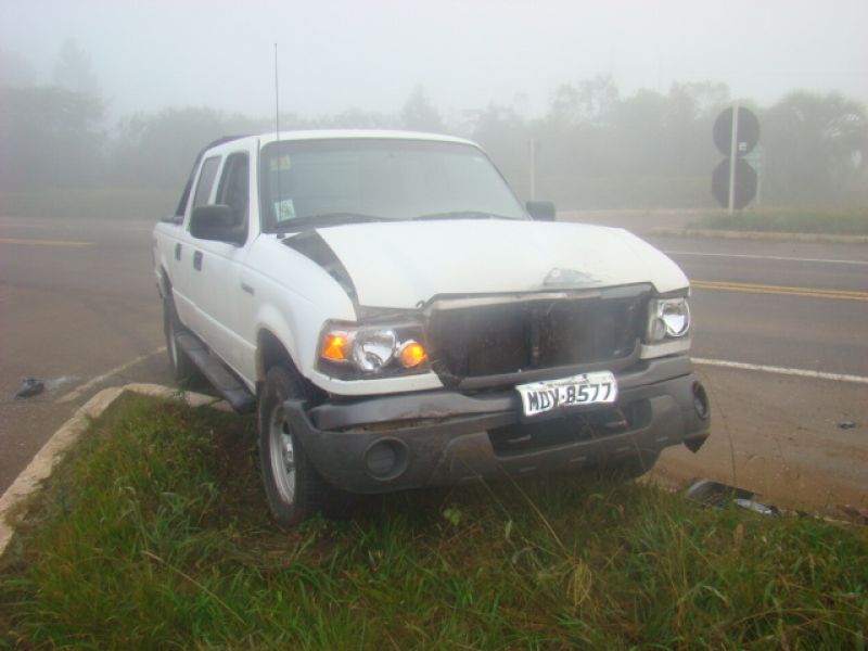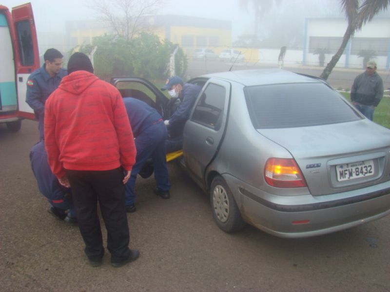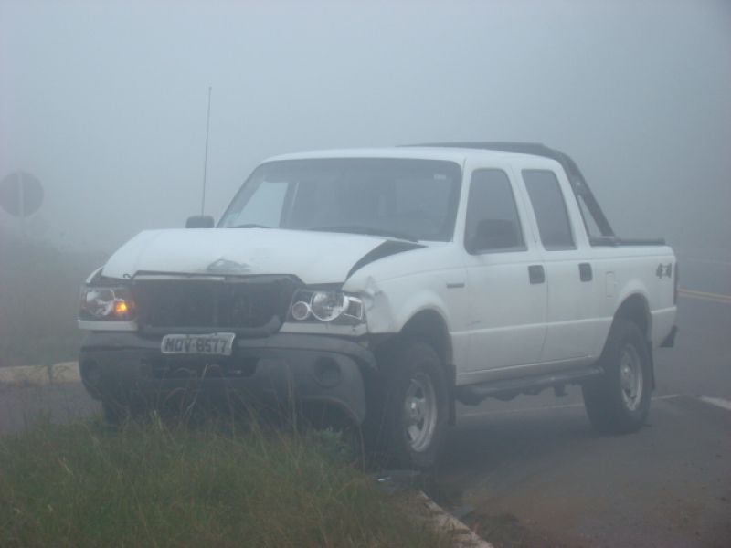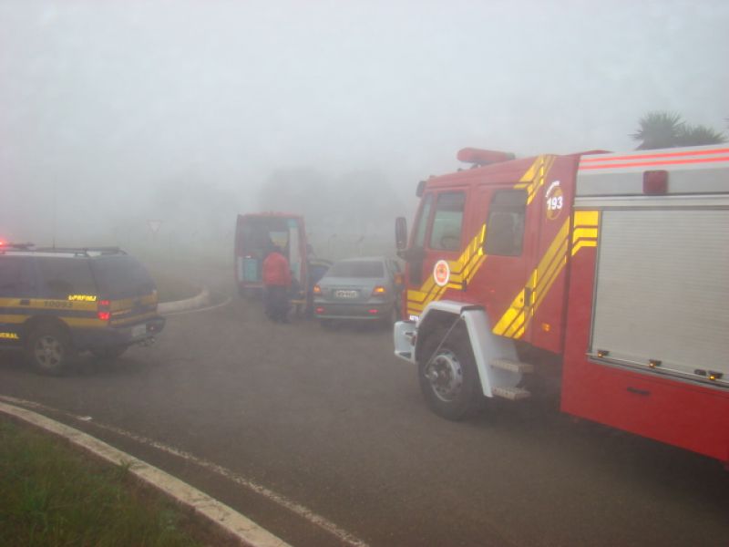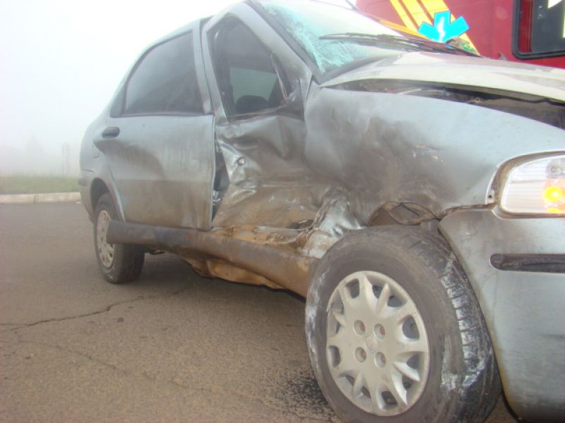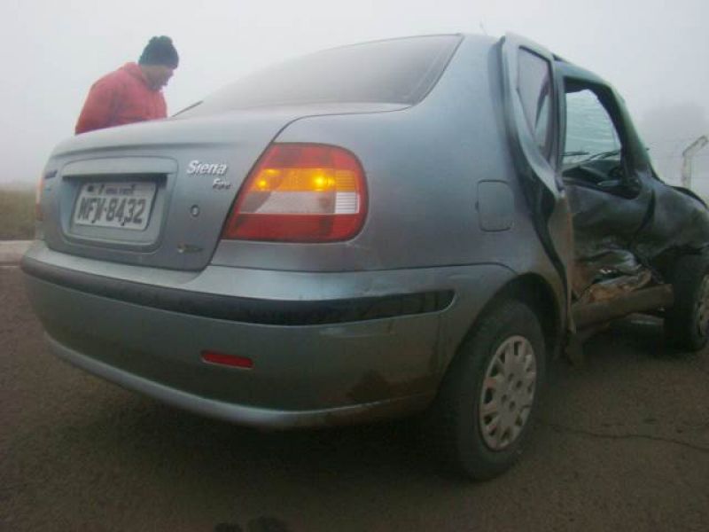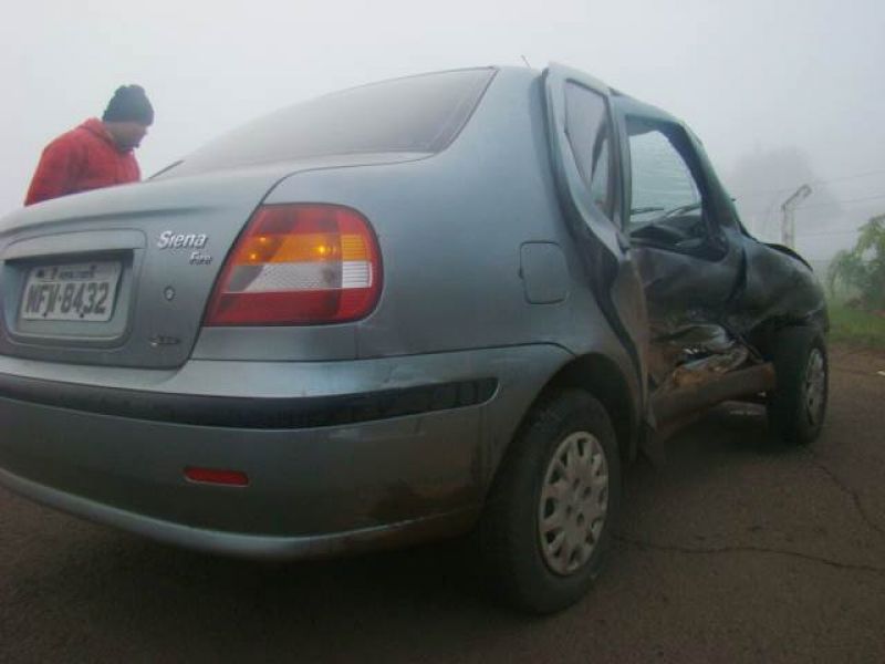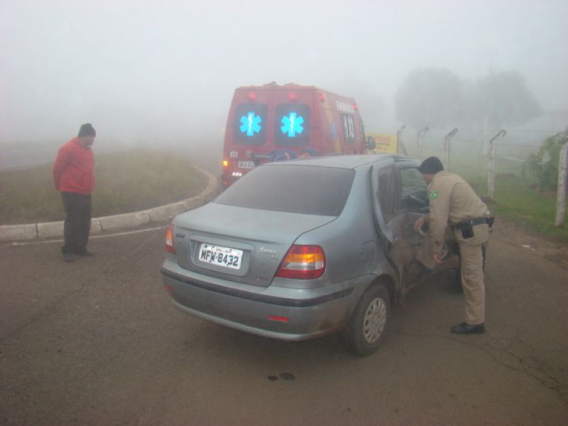 08/06/2013 Uma pessoa ficou ferida em acidente na BR-282 em Joaçaba. Por volta das 08h, colisão em frente ao posto da Polícia Rodoviária Federal (PRF) envolveu um Fiat Siena placas MFW-8432 de Herval d' Oeste e uma caminhonete Ford Ranger placas MDV-8577 de Catanduvas. O motorista do Siena, de iniciais G.PR.J, de 26 anos, fazia conversão na rótula de acesso ao aeroporto Santa Terezinha para retornar sentido presídio quando foi atingido no lado direito pela caminhonete. O condutor foi atendido pelo Corpo de Bombeiros, imobilizado e conduzido com fraturas na cabeça ao Hospital Universitário Santa Terezinha. O motorista da caminhonte nada sofreu. Havia muita neblina no momento do choque.