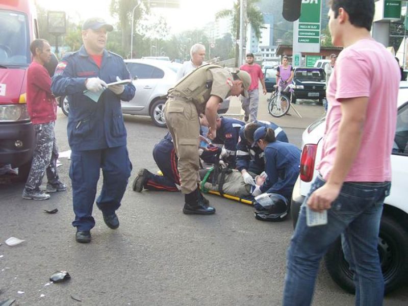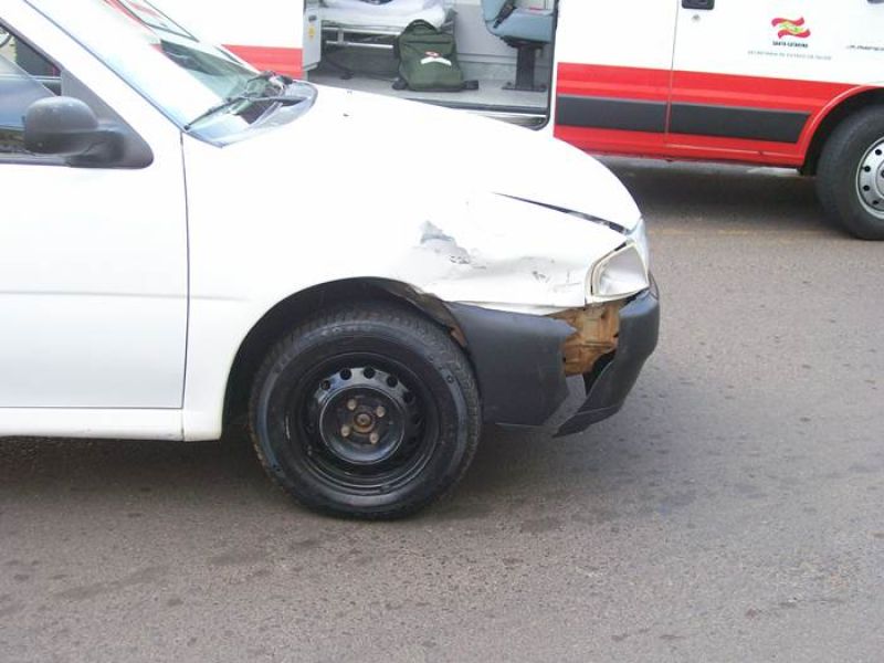 12/06/2013 Um acidente de trânsito na tarde desta quarta-feira (12) deixou uma mulher ferida em Herval d' Oeste. Colisão no cruzamento das ruas Santa Catarina e Nereu Ramos envolveu a motocicleta CG-125 placa IRC-5615 de Erechim (RS) e um VW/Gol placas AJU-7082 de Erval Velho (SC). A motocicleta era conduzida por uma jovem de iniciais J.C.L., de 25 anos, sofreu escoriações e foi atendida pelo SAMU e Corpo de Bombeiros, posteriormente encaminhada ao Hospital Universitário Santa Terezinha de Joaçaba para avaliação médica. O motorista do Gol nada sofreu. Segundo informações, a moto descia pela rua Santa Catarina quando teve a frente cortada pelo carro que saída da rua Nereu Ramos. A Polícia Militar esteve no local, orientou o trânsito, confeccionou o Boletim de Acidente de Trânsito e em seguida liberou os veículos.