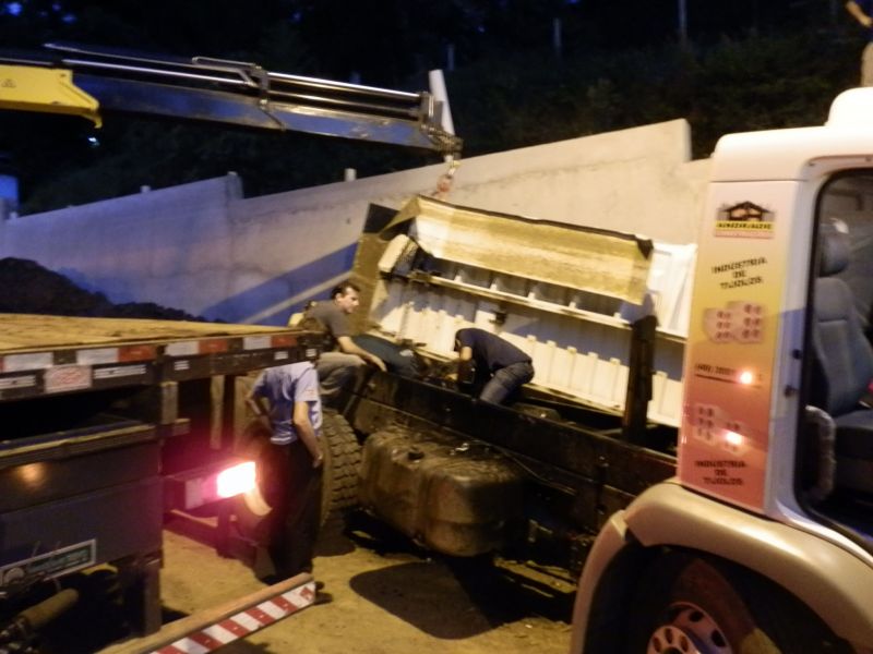 23/03/2012 Um caminhão basculante tombou no final da tarde desta sexta-feira (23) em Herval D’ Oeste. O acidente aconteceu por volta das 18h30min na rua 31 de março, ao lado da 2ª Companhia de Bombeiro Militar. O motorista não se feriu. Conforme o proprietário da empresa, Juceli Andrade, o caminhão que estava carregado com cascalho prestava serviço ao quartel e capotou logo após ter completado a carga. Ele acredita que tenha havido problema na parte mecânica na caçamba. O trânsito ficou interrompido totalmente por aproximadamente meia hora, até a retirada do veículo, que segundo Andrade, é novo e tem menos de 30 dias de uso.