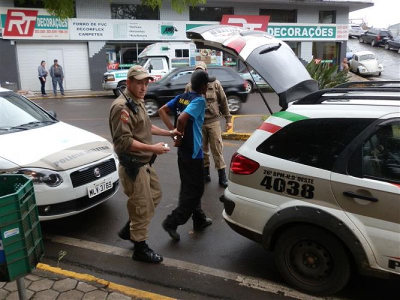 19/06/2013 Um homem foi preso em flagrante na tarde desta quarta-feira (19) no centro de Joaçaba. A ocorrência ocorreu por volta das 15h30, na praça da Rodoviária. A Polícia Militar (PM) foi informada que um homem havia furtado em um caminhão de uma transportadora que estava descarregando no pátio do supermercado Passarela em Herval d' Oeste. Uma testemunha visualizou o momento em que o ladrão saía do caminhão e avisou as vítimas, que por sua vez, acionaram a PM. Logo depois os policiais localizaram o suspeito, de iniciais S.S., de 33 anos. Com ele foi encontrado um pen drive, uma carteira de cigarros e um isqueiro. As vítimas reconheceram os objetos e o autor do furto. Ele foi conduzido à Delegacia de Polícia de Joaçaba para os procedimentos necessários. Segundo informações da PM, S.S já possui 22 passagens pela polícia.