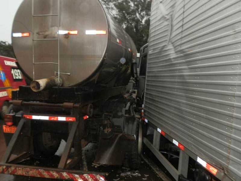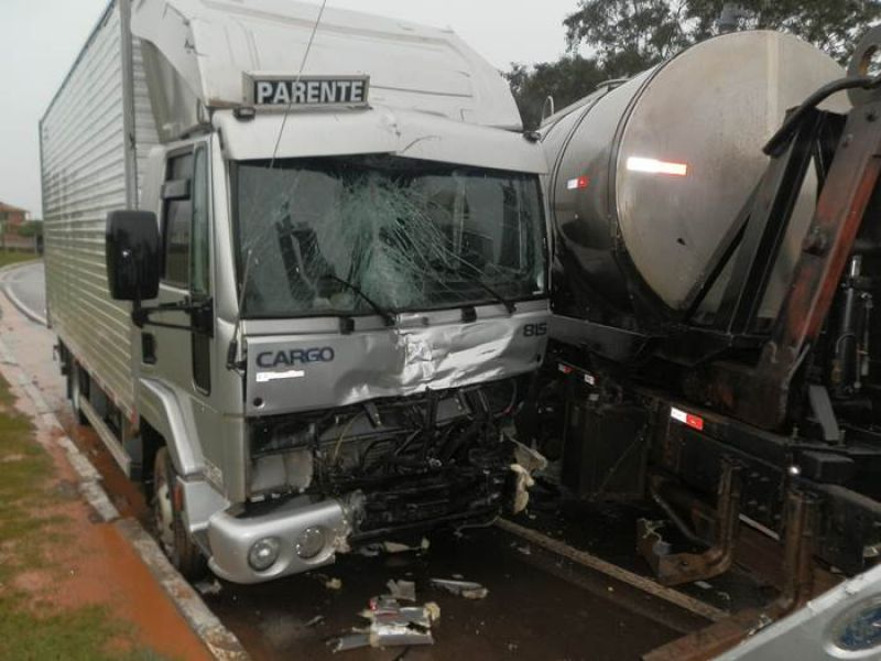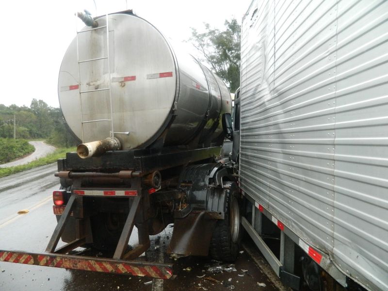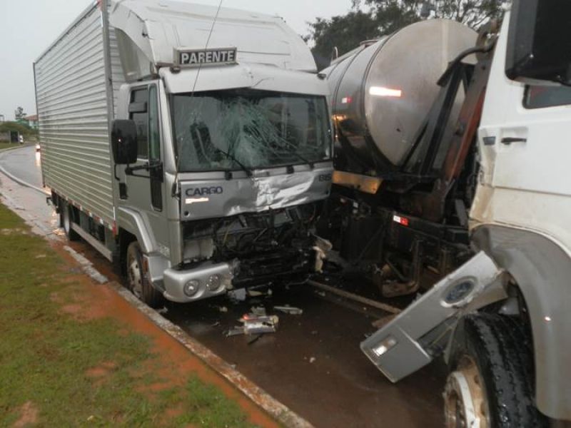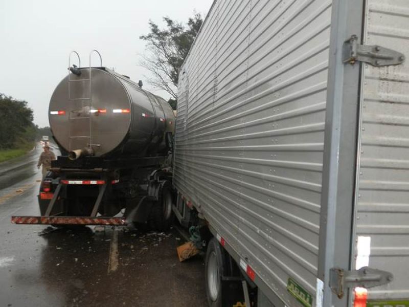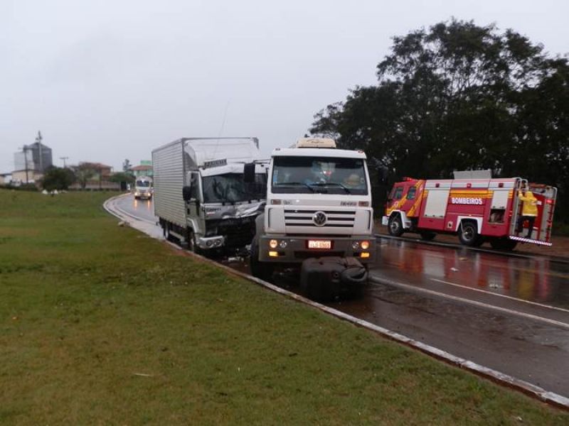 25/06/2013 Uma colisão envolvendo dois caminhões deixou uma pessoa ferida, próximo ao distrito industrial de Erval Velho. O acidente foi registrado por volta das 16h desta segunda-feira (24) na BR- 282. Informações preliminares indicam que o motorista de um caminhão Volkswagen placas ILD- 5965 de Joaçaba, ao sair de uma estrada vicinal cortou a frente do caminhão Ford Cargo, placas MKA- 6671 de Ibirama-SC, que transitava no sentido Erval Velho - Joaçaba, vindo a ocasionar o acidente. Os motoristaa dos dois caminhões foram levados pelo Corpo de Bombeiros ao Hospital Universitário Santa Terezinha. Chovia forte no momento do acidente.