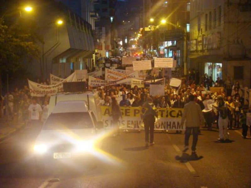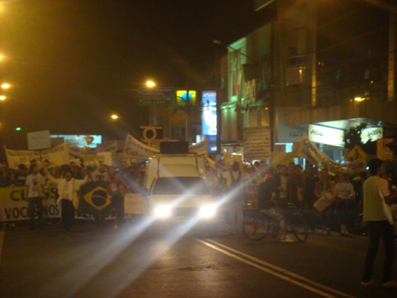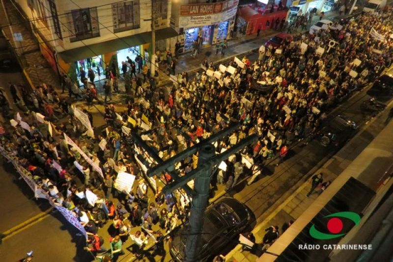 Vídeo mostra passeata passando pela XV em frente a Rádio Catarinense