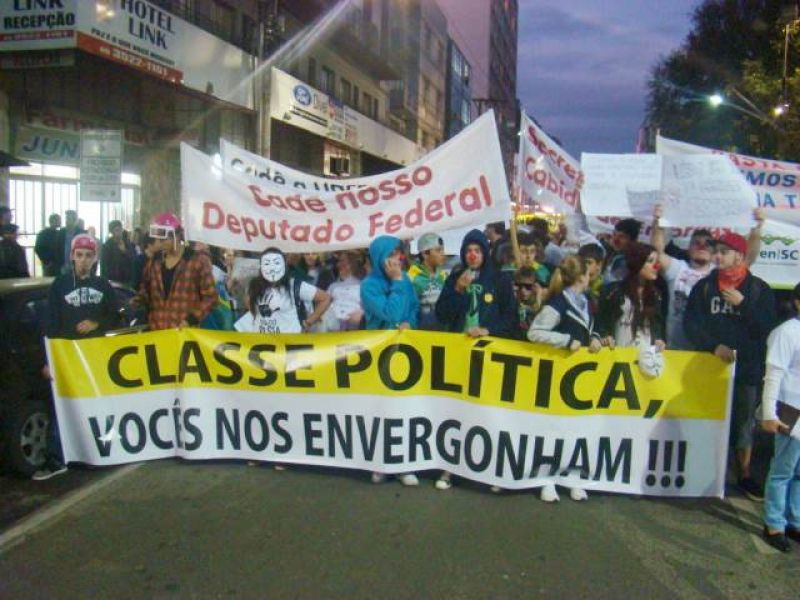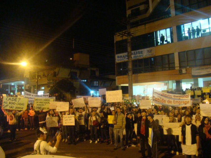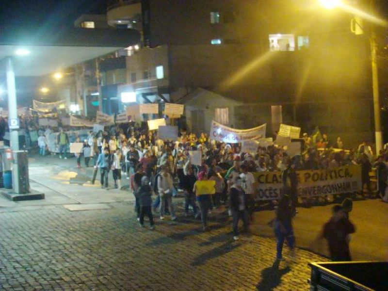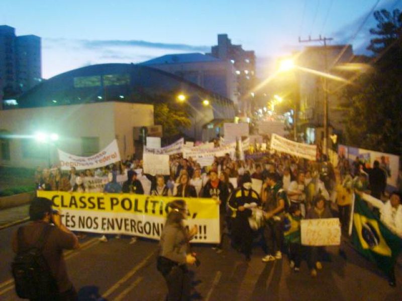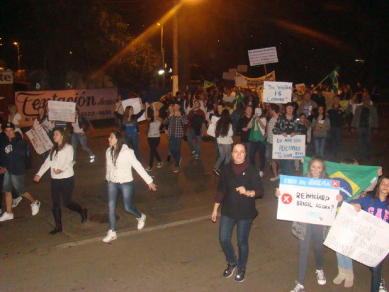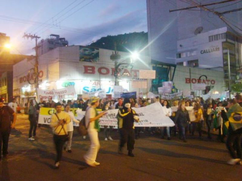 27/06/2013 Foi realizada nesta quinta-feira (27) mais uma Passeata Pacífica em Joaçaba. Desta vez o movimento passou também por Herval d' Oeste. A concentração iniciou por volta das 17h30 na praça Adolfo Konder, em frente a prefeitura de Joaçaba. Segundo cálculos da Polícia Militar, que acompanhou o percurso dos manifestantes, cerca de 2,5 mil pessoas foram às ruas reivindicar melhorias na Saúde, Educação, Infraestrutura, pedir o fim da corrupção, e investimentos, entre outros temas. A passeata saiu da praça Adolfo Konder por volta das 18h, passou pela ponte Emílio Baugarten, seguiu para rua Nereu Ramos em Herval d' Oeste, parou em frente a prefeitura, seguiu pela ponte Jorge Lacerda, contornou o terminal rodoviário de Joaçaba, passou pela avenida Beira Rio, XV de Novembro e se dispersou no ponto de saída. A passeata teve o mesmo molde da realizada no último dia 18, que reuniu 2,5 mil pessoas. Com carro de som que por várias vezes tocou o Hino Nacional, cartazes, faixas, apitos, bandeiras, megafones, nariz de palhaço e gritos de ordem, com destaque para o que mobilizou os brasileiros em todo o país, o “Vem Pra Rua”, os protestantes ganharam a simpatia das pessoas na reivindicação por um Brasil melhor.