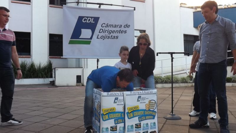 06/07/2013 Na tarde deste sábado (06) foram conhecidos os quatro primeiros ganhadores da promoção “Joaçaba Um Grande Shopping a Céu Aberto”. Em parceria com a empresa Raízes Diário, a Câmara dos Dirigentes Lojistas (CDL) realizou o primeiro sorteio que pode ser acompanhado ao vivo pelos consumidores na praça Adolfo Konder em frente a prefeitura. Na urna todos os cupons que foram distribuídos pelos lojistas durante esta primeira etapa da promoção.