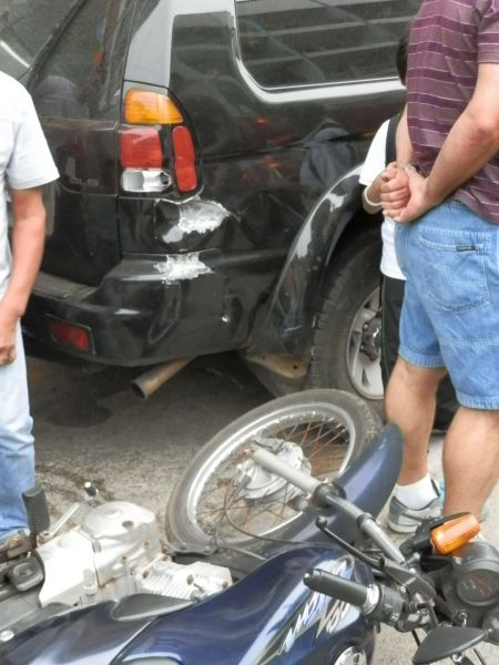 26/03/2012 Uma motociclista sofreu acidente de trânsito ocorrido por volta das 18 horas desta segunda-feira (26) na avenida XV de Novembro em Joaçaba, em frente ao Xico Loterias. A vítima conduzia uma motocicleta Honda CG-125 placa MCJ-0535 de Macieira (SC), conduzida por S.A.O., 31 anos, quando outra moto teria cortado a frente chegando a atingi-la. Desequilibrada, a motociclista acabou se chocando com uma caminhonete Mitsubishi Pajero placas DFO-1946 de Joaçaba que estava estacionada.