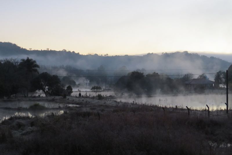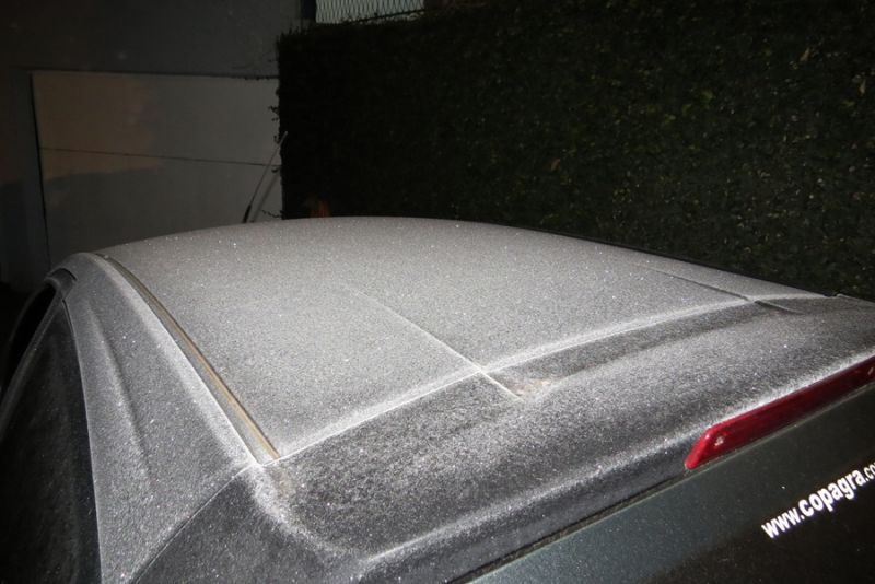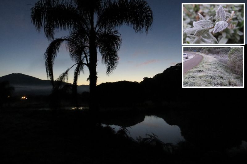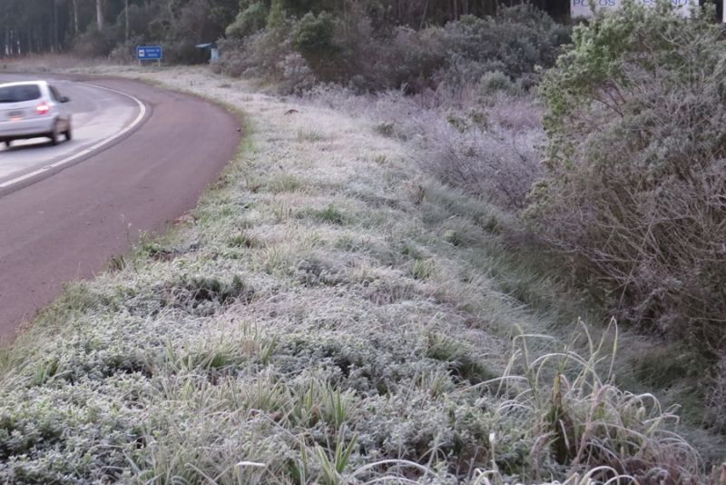 24/07/2013 Depois da neve, a geada se apresentou no Meio-Oeste Catarinense. O dia amanheceu em Joaçaba com temperaturas abaixo de zero e com o branco tomando conta da paisagem na maioria das comunidades rurais. A equipe de reportagem da Rádio Catarinense esteve na manhã desta quarta-feira (24) no Distrito de Nova Petrópolis e na Área Industrial às margens da BR-282. A fina camada de gelo pode ser visualizada no telhado das casas, nos capôs de carros e na vegetação. No Aeroporto Santa Teresinha os termômetros atingiram -2,6 graus entre 6 e 7h da manhã. Na XV a temperatura chegou a 0 grau. A frente fria a partir desta quarta-feira deverá perder força no Sul do Brasil, mas mesmo assim o frio deverá continuar.